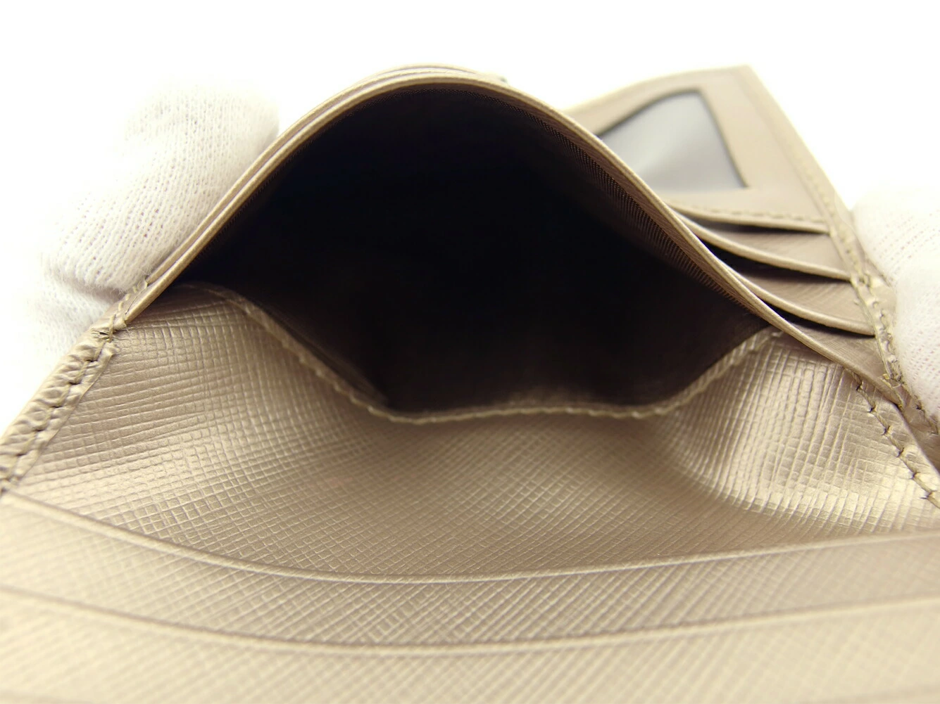 | コンディション | 全体の状態詳細:大きなダメージも無く、比較的良いコンディションです。社外リペア跡(スレ色着色)あり。その他 スレ&汚れ(札入れ&小銭入れ&カード入れ&ポケットもあり) 傷 コバ割れ(札入れの方フラップ付け根) 内パイピングキレ(3ヵ所程) 金具スレ などの一般的使用感があります。 |