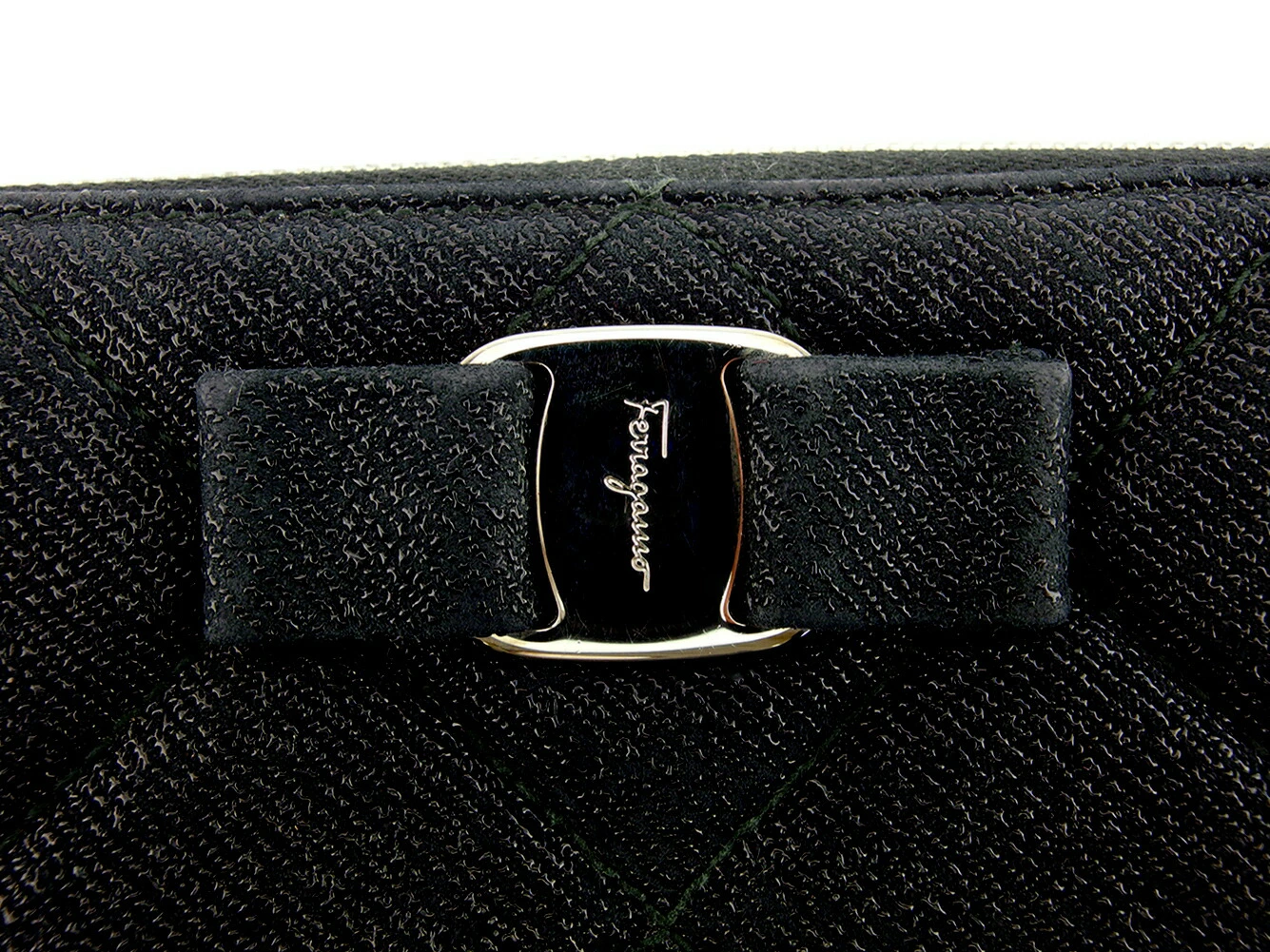 [24% OFF Coupon] Salvatore Ferragamo Vara Ribbon Quilted Long Wallet in Black and Silver, Pre-owned, Men's
