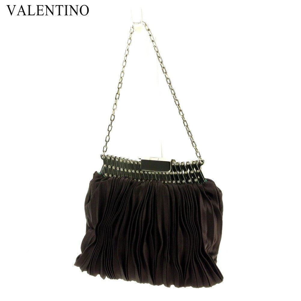 [24% OFF Coupon] Valentino Garavani Satin Pleated Handbag with Rhinestones, Brown and Silver, Pre-owned, Men's