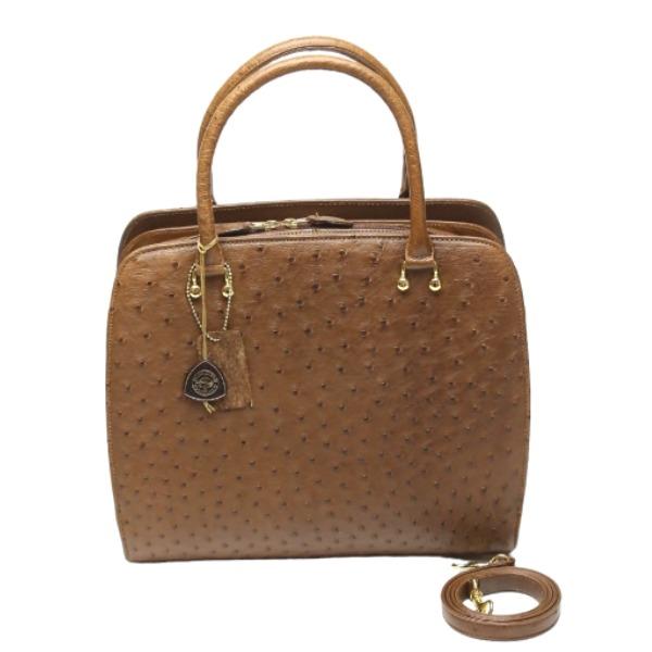 2way Full Point Shoulder Bag Ostrich Brown Handbag ostrich [SS] [Used]
