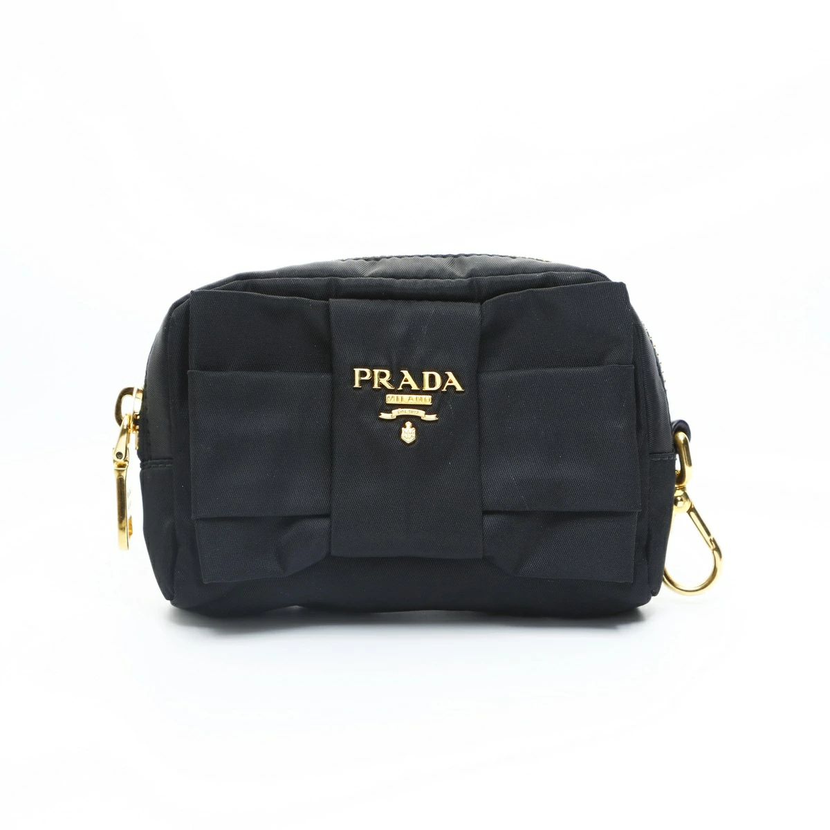 [3-Day Limited Time Offer: 20% Off All Items Until 10/20 11:95 PM] PRADA Nylon Mini Pouch with Key Charm, Black, WS23443 [Pre-owned]