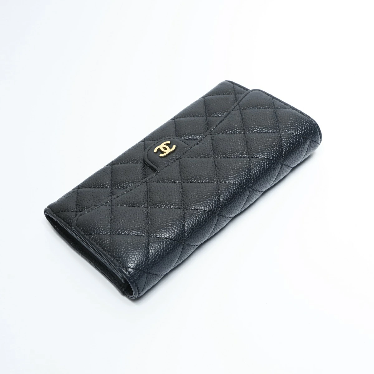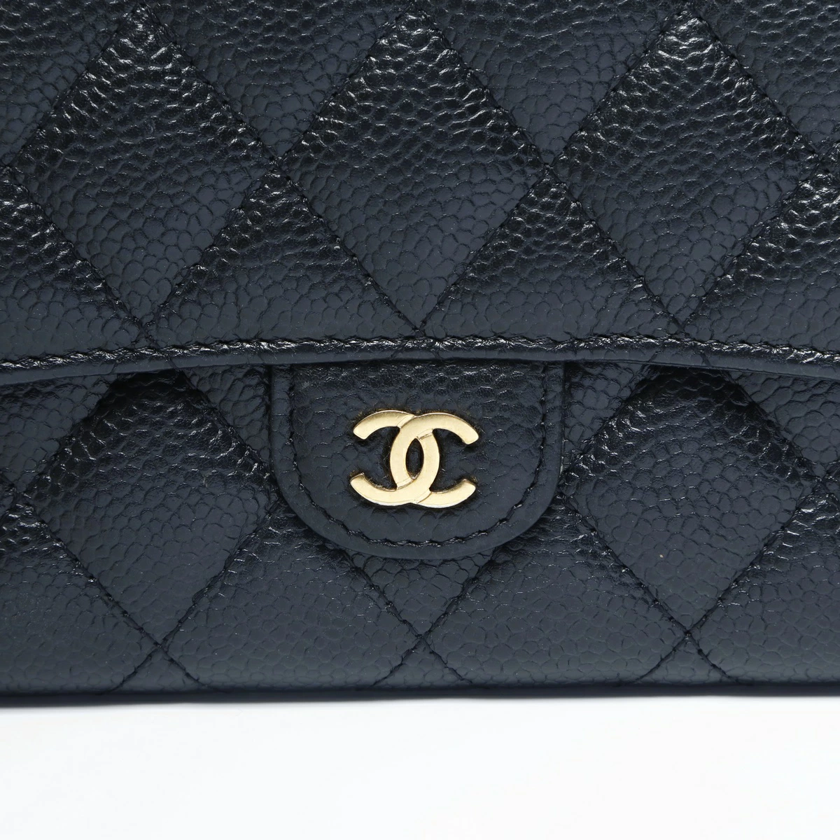 [3-Day Limited Time Offer: 20% Off All Items Until 10/26 11:59 PM] Chanel CHANEL 21 Series 2015-2016 Matelassé Caviar Leather Bifold Flap Long Wallet, Black, WS23667 [Pre-owned]