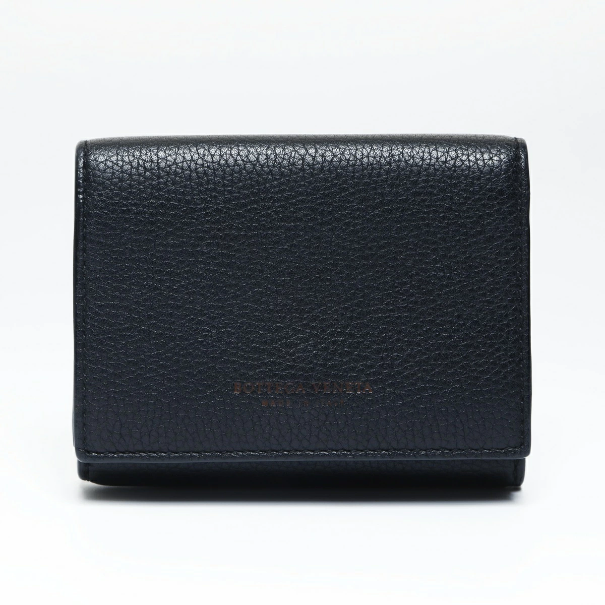 [3-Day Limited Time Offer: 20% Off All Items! Until 11/16 23:59] Bottega Veneta Leather Compact Tri-Fold Wallet, Black, WS24281 [Pre-owned]