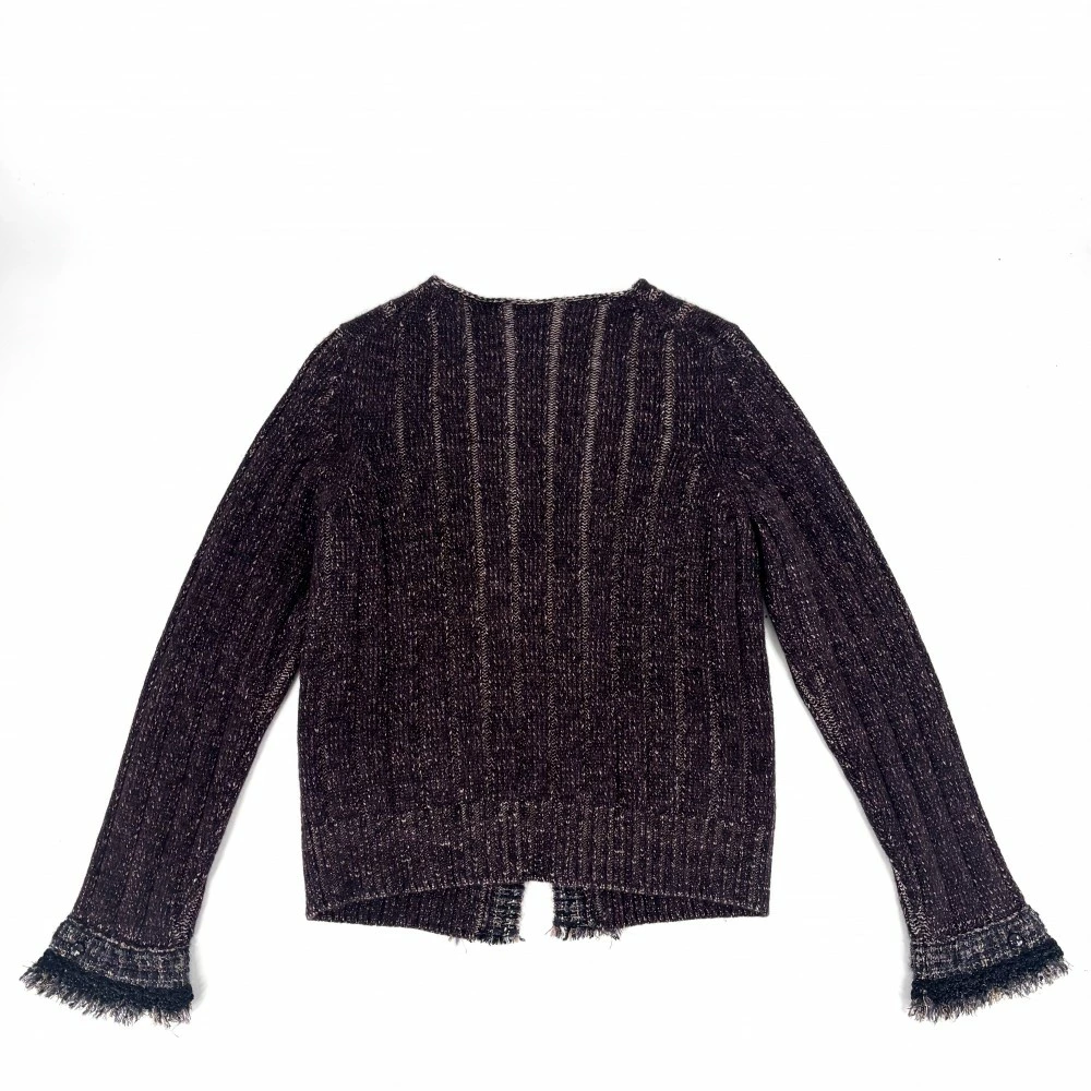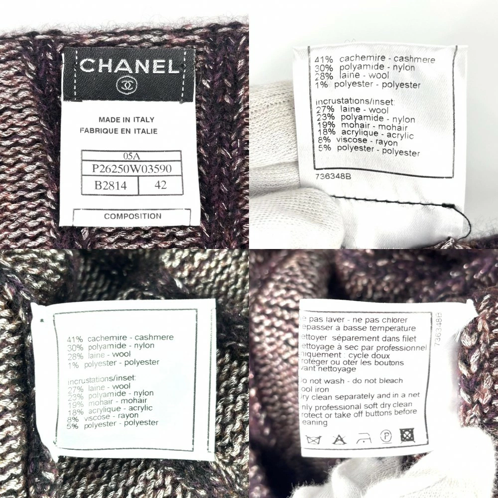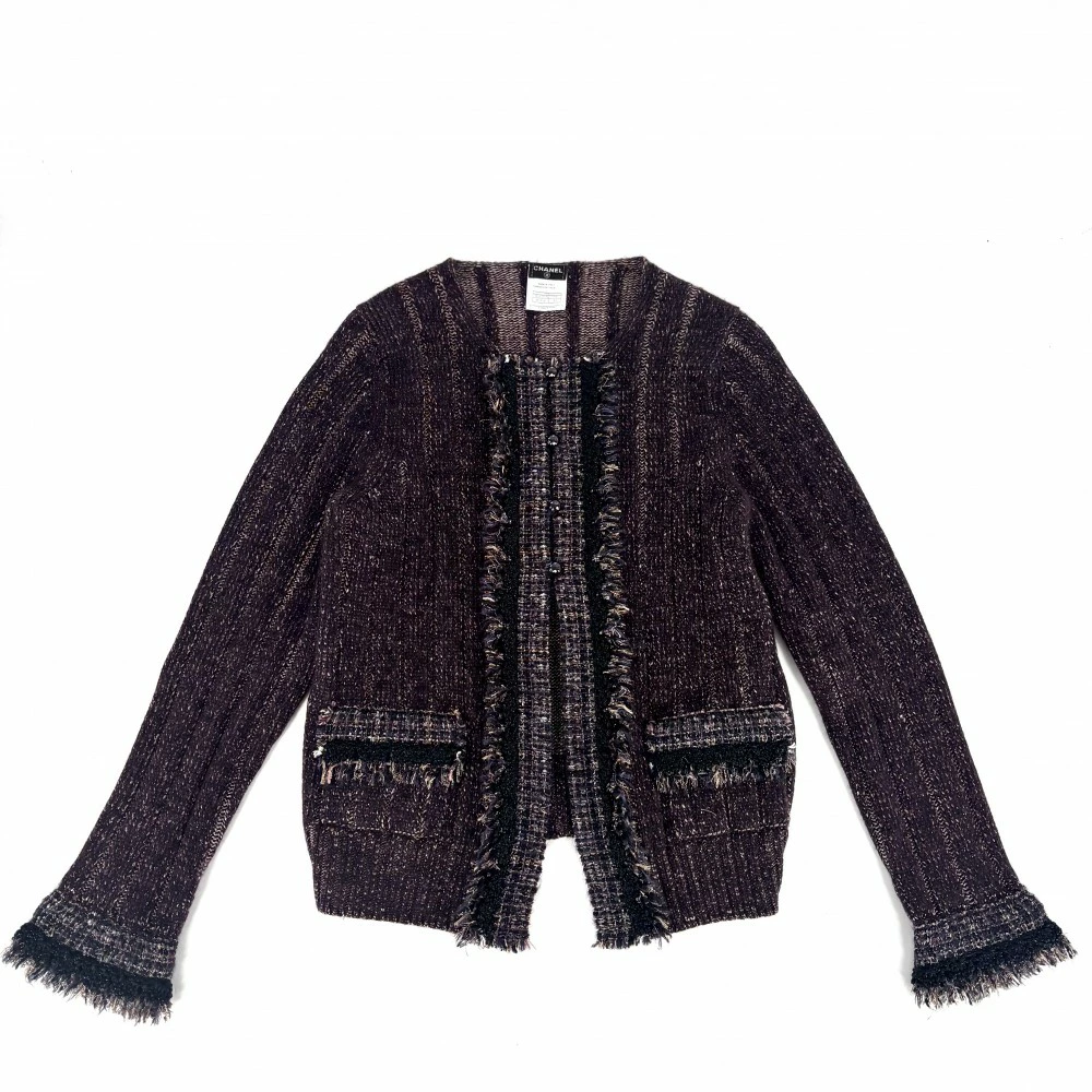 [45% OFF] Chanel Women's Collarless Tweed Knit Jacket, Outerwear, Vintage Apparel, Rhinestones, Coco Buttons, Glitter, Size 42, Purple, Cashmere, Nylon, Wool, Polyester, Fall/Winter, Excellent Condition, 2005 [Pre-owned]
