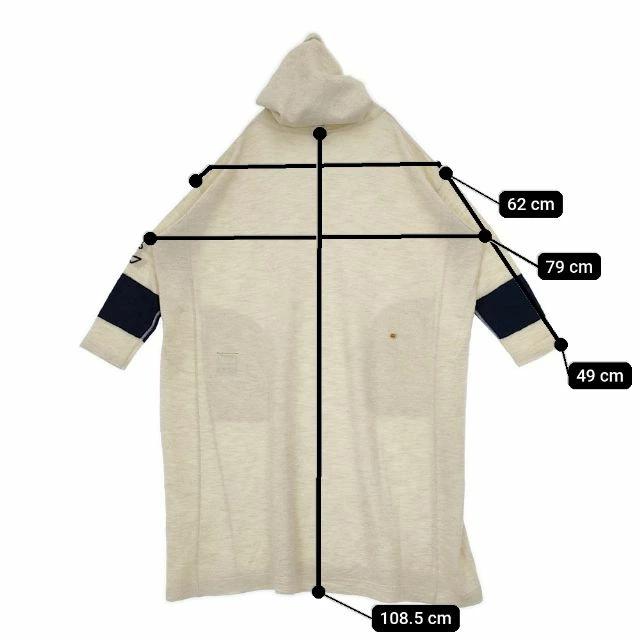 | 実寸サイズ | 肩幅:約62cm 着丈:約108.5cm 身幅:約79cm 袖丈:約49cm ※採寸画像がある商品はハンガーに吊るした状態での計測のため、平置きでの採寸とは差が生じる場合がございます。平置きでの実寸サイズをご希望の場合は、ご購入前に必ずご質問ください。 ※記載以外のサイズが合わないことを理由とした返品はできませんので、 記載部分以外で実寸サイズの気になる箇所があれば必ず購入前にご質問ください。 |