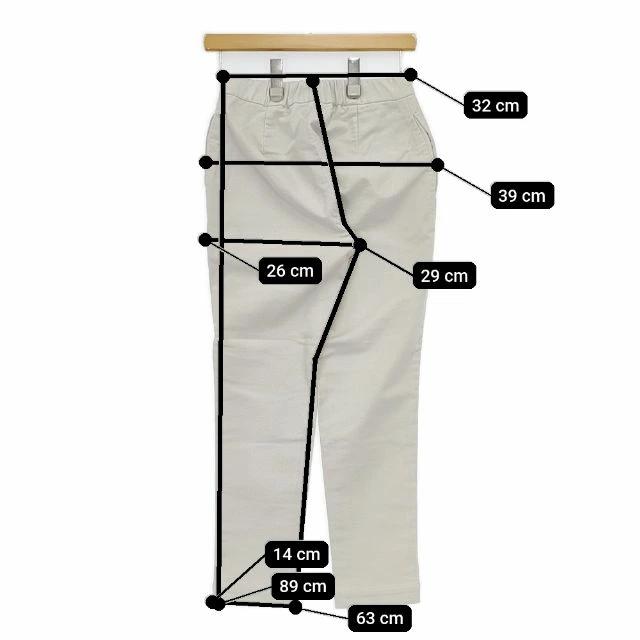 | 実寸サイズ | 総丈:約89cm ウエスト:約32cm ウエスト最長:約36cm 股上:約29cm 股下:約63cm ヒップ:約39cm ワタリ幅:約26cm 裾幅:約14cm ※採寸画像がある商品はハンガーに吊るした状態での計測のため、平置きでの採寸とは差が生じる場合がございます。平置きでの実寸サイズをご希望の場合は、ご購入前に必ずご質問ください。 ※記載以外のサイズが合わないことを理由とした返品はできませんので、 記載部分以外で実寸サイズの気になる箇所があれば必ず購入前にご質問ください。 |