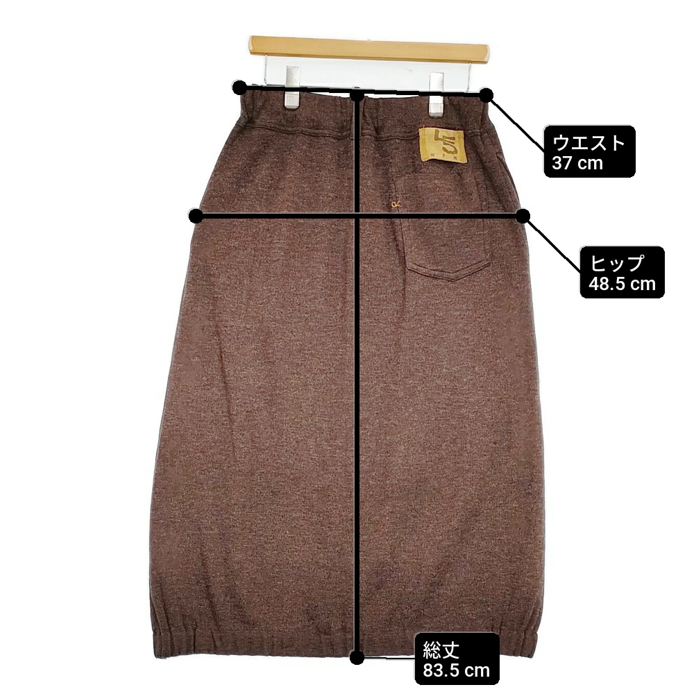 | 実寸サイズ | 総丈:約83.5cm ウエスト:約37cm ウエスト最長:約60cm ヒップ:約48.5cm ※採寸画像がある商品はハンガーに吊るした状態での計測のため、平置きでの採寸とは差が生じる場合がございます。平置きでの実寸サイズをご希望の場合は、ご購入前に必ずご質問ください。 ※記載以外のサイズが合わないことを理由とした返品はできませんので、 記載部分以外で実寸サイズの気になる箇所があれば必ず購入前にご質問ください。 |