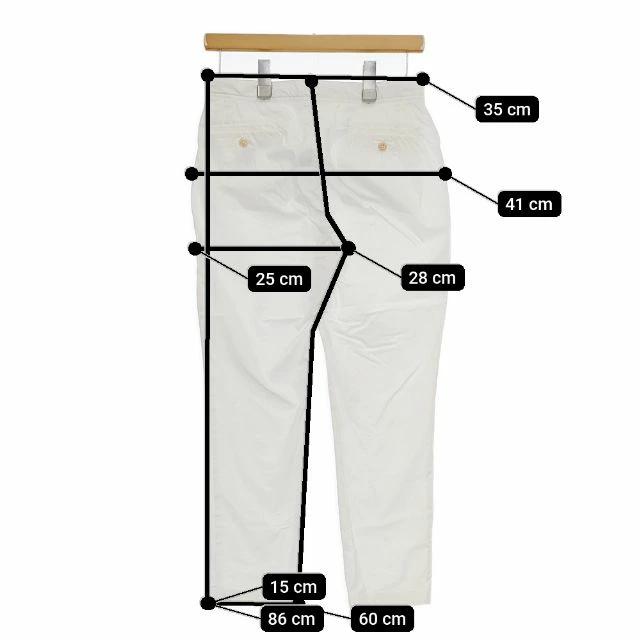 | 実寸サイズ | 総丈:約86cm ウエスト:約35cm 股上:約28cm 股下:約60cm ヒップ:約41cm ワタリ幅:約25cm 裾幅:約15cm ※採寸画像がある商品はハンガーに吊るした状態での計測のため、平置きでの採寸とは差が生じる場合がございます。平置きでの実寸サイズをご希望の場合は、ご購入前に必ずご質問ください。 ※記載以外のサイズが合わないことを理由とした返品はできませんので、 記載部分以外で実寸サイズの気になる箇所があれば必ず購入前にご質問ください。 |