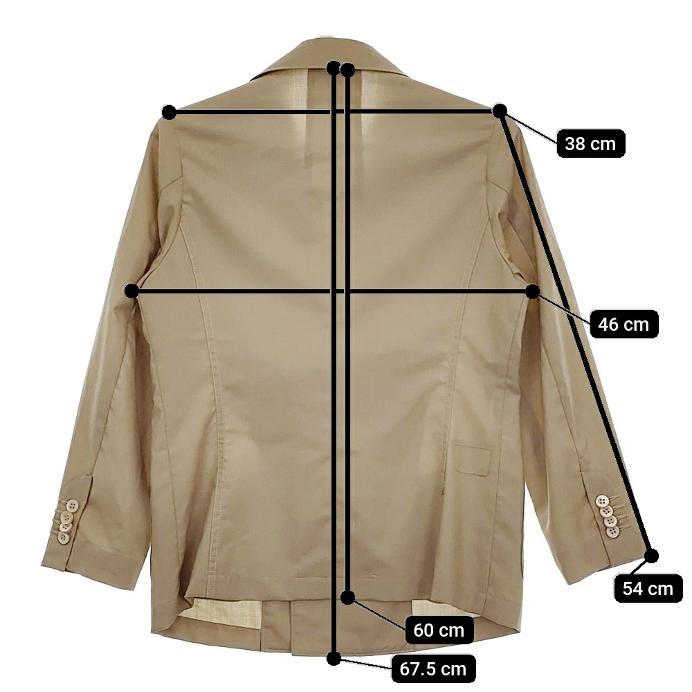 | 実寸サイズ | 肩幅:約38cm 着丈:約67.5cm 着丈(後ろ):約60cm 身幅:約46cm 袖丈:約54cm ※記載以外のサイズが合わないことを理由とした返品はできませんので、 記載部分以外で実寸サイズの気になる箇所があれば必ず購入前にご質問ください。 |