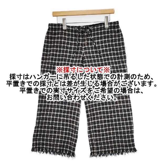| 実寸サイズ | 総丈:約76cm ウエスト:約40.5cm 股上:約29cm 股下:約53cm ヒップ:約45cm ワタリ幅:約30cm 裾幅:約27cm ※採寸画像がある商品はハンガーに吊るした状態での計測のため、平置きでの採寸とは差が生じる場合がございます。平置きでの実寸サイズをご希望の場合は、ご購入前に必ずご質問ください。 ※記載以外のサイズが合わないことを理由とした返品はできませんので、 記載部分以外で実寸サイズの気になる箇所があれば必ず購入前にご質問ください。 |