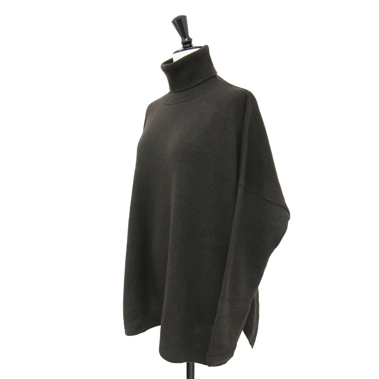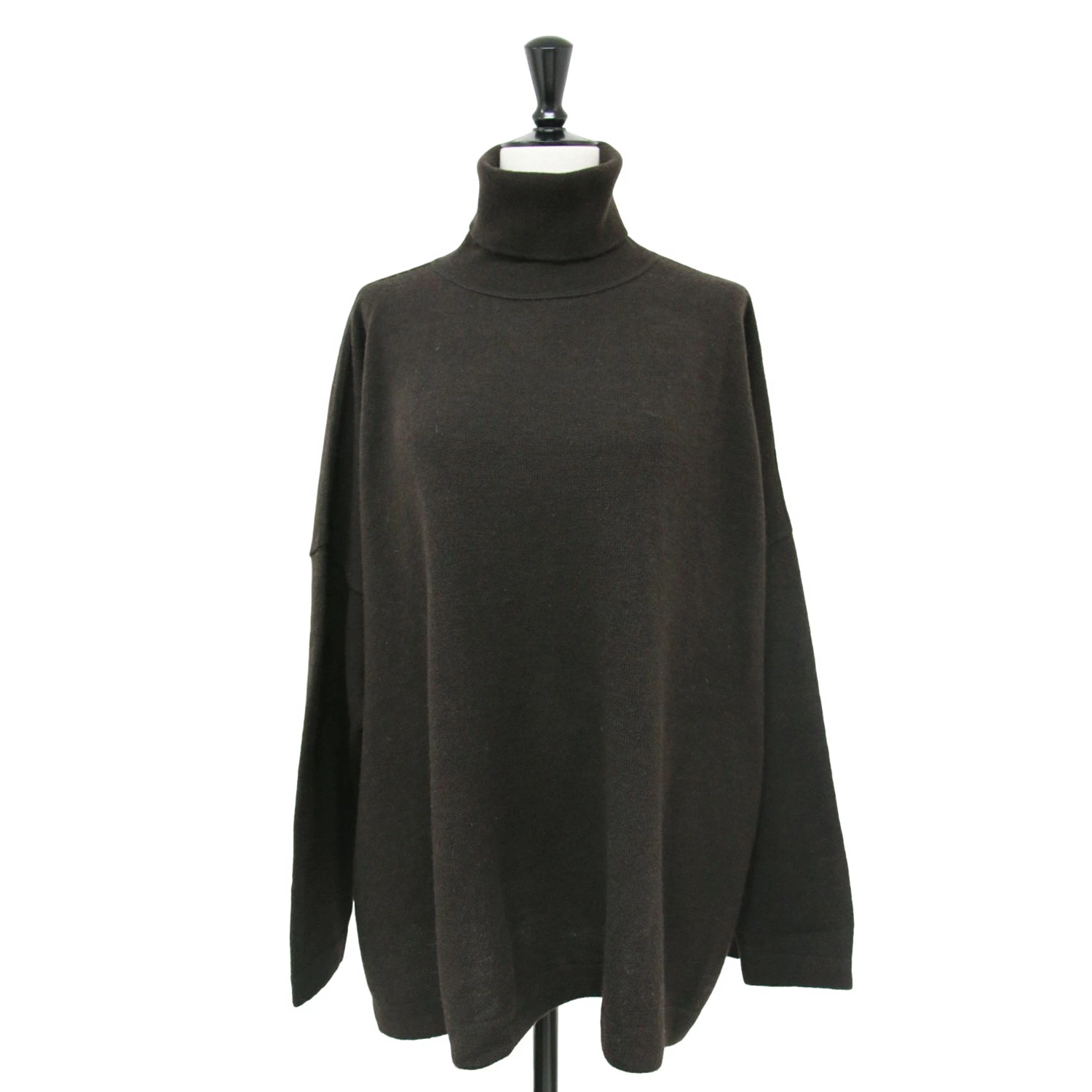 45R Forty-Five R Knit, Dark Brown, Size: Free, US Float Big Slit Turtleneck / Knit Pullover, Long Sleeve, Wool, High Gauge, Made in Japan, Top, Sweater, Women's, Pre-owned, K4616
