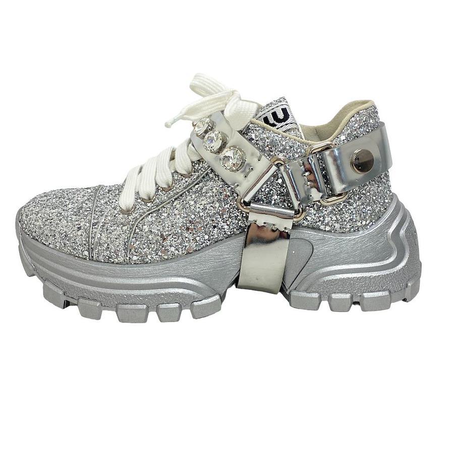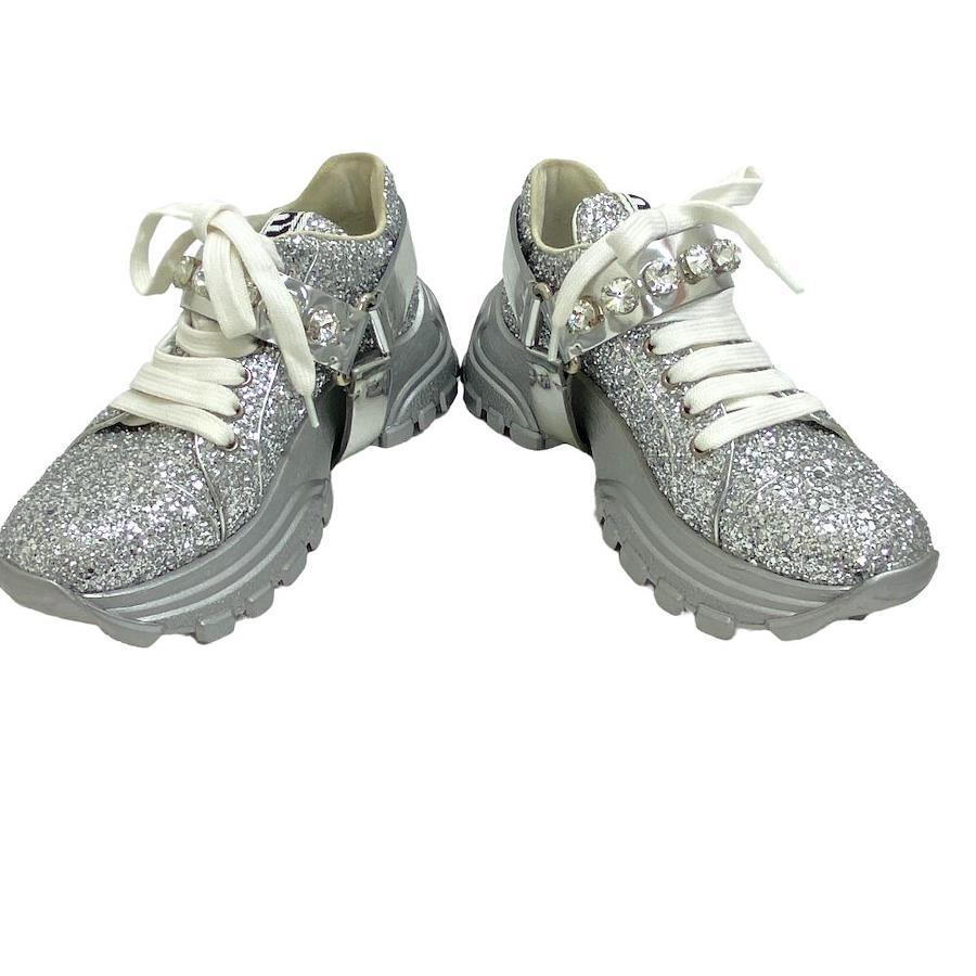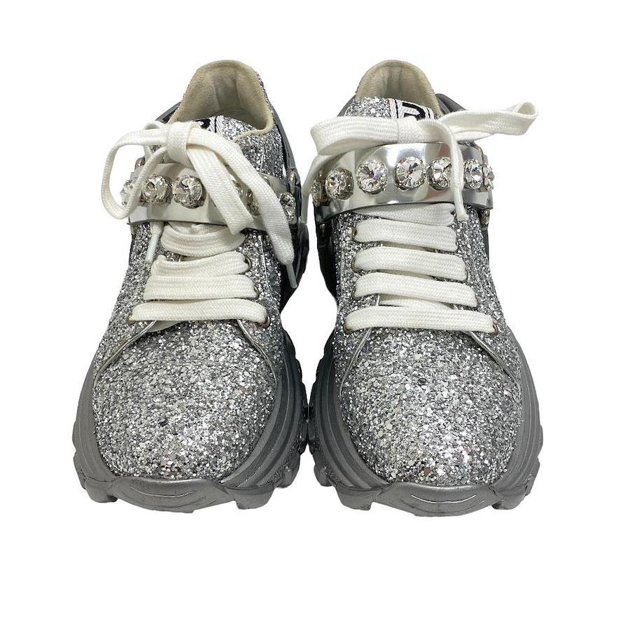 商品名 | MIUMIU/ミュウミュウ ビジュー グリッター スニーカー シルバー レディース |