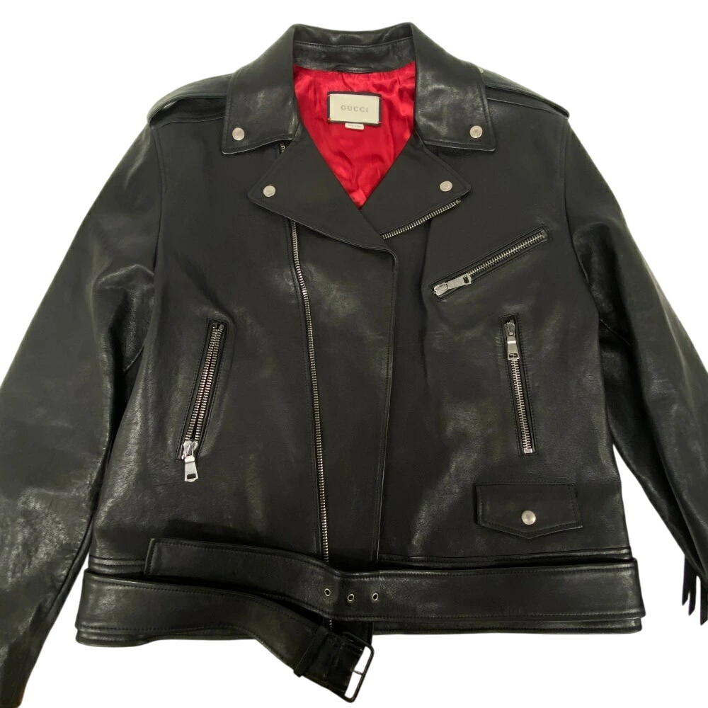 [5% Off Coupon Available Now!] GUCCI 442668 Tiger Embroidered Biker Jacket, Black, Men's, Recommended, Popular