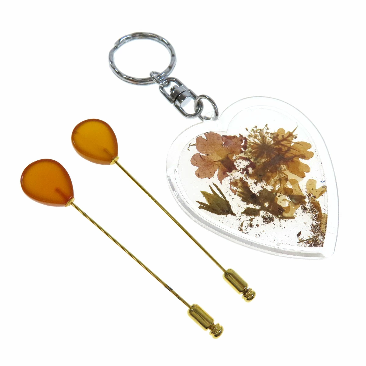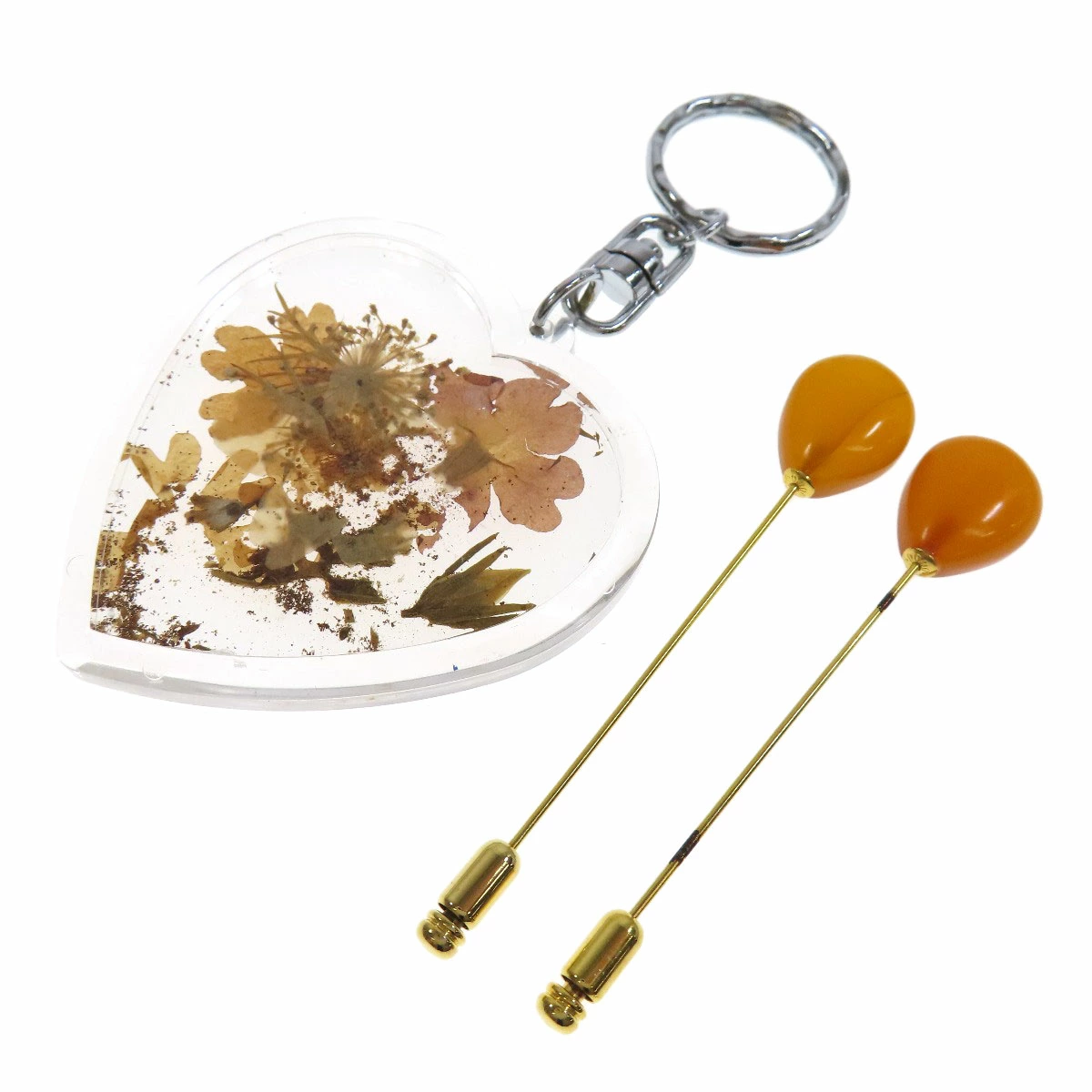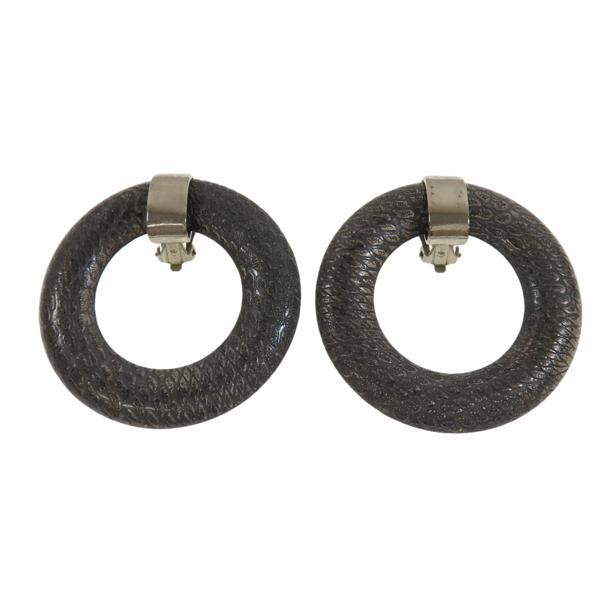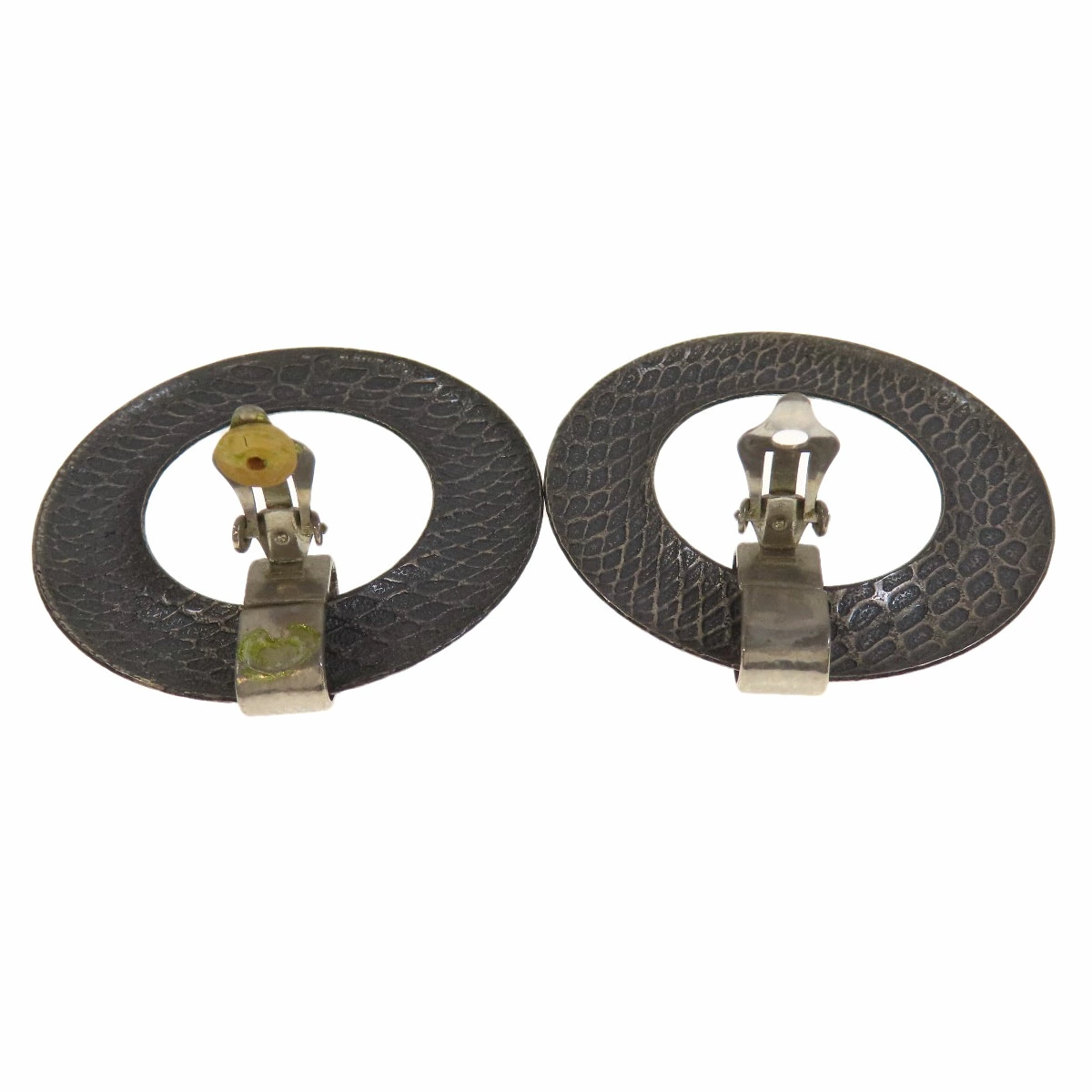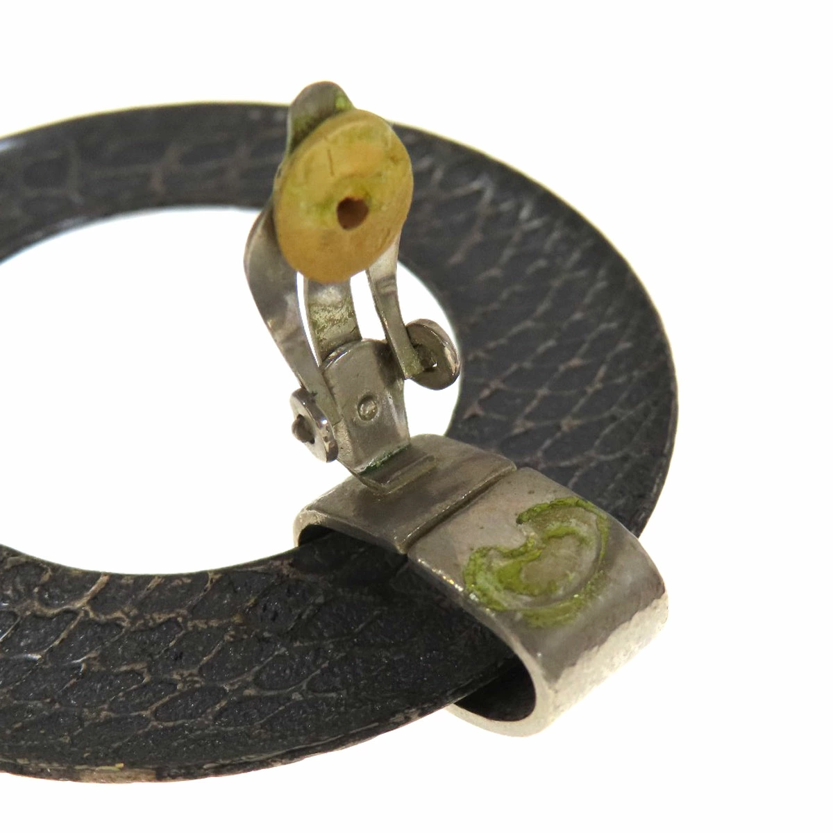型押しグレーイヤリングトップの大きさ約56x54x3mm、キャッチが片方ありません。ピンブローチサイズ約73x13x6mmです。キーホルダー全長約10.5x5.7x5.7cm。