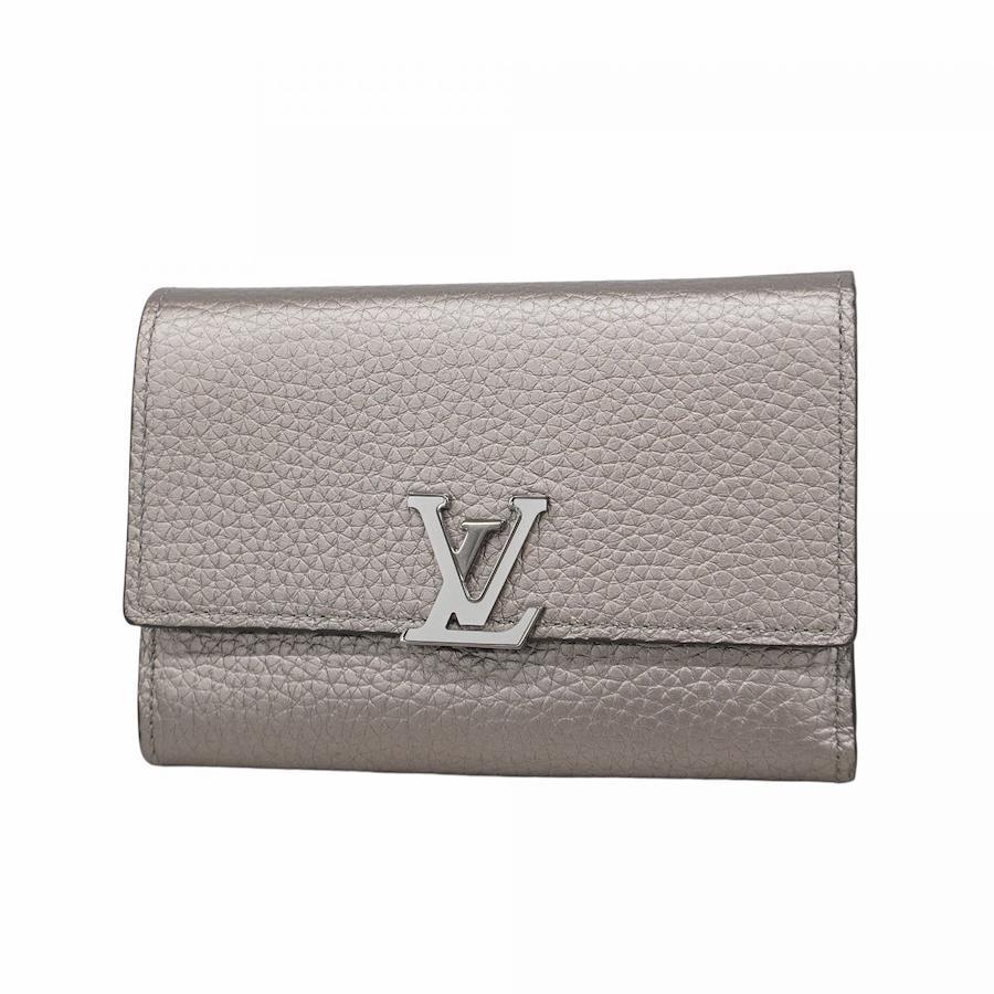 【5ia0613-h】ルイヴィトン 三つ折り財布 トリヨン ポルトフォイユカプシーヌコンパクト M81671 シルバー【中古】レディース