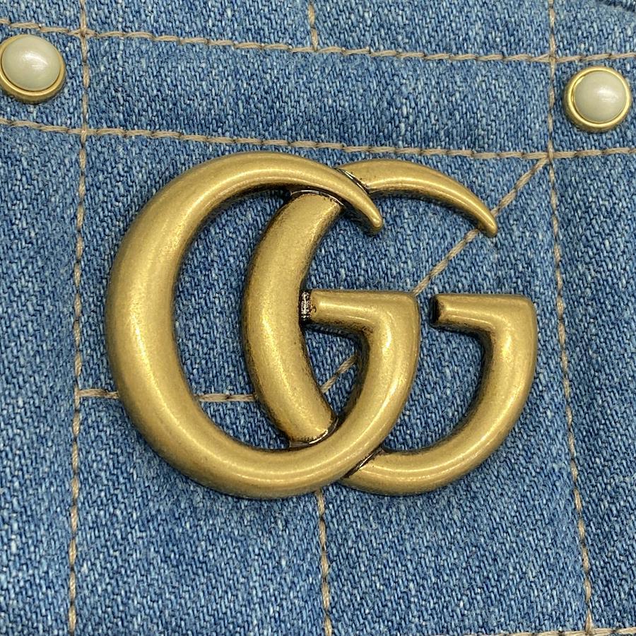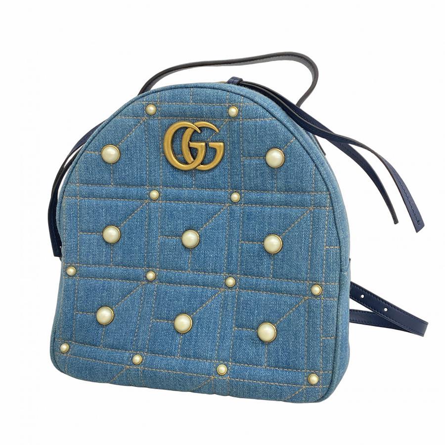【5ia0767-h】グッチ リュック・デイパック GGマーモント 476671 デニム ブルー ゴールド金具【中古】レディース