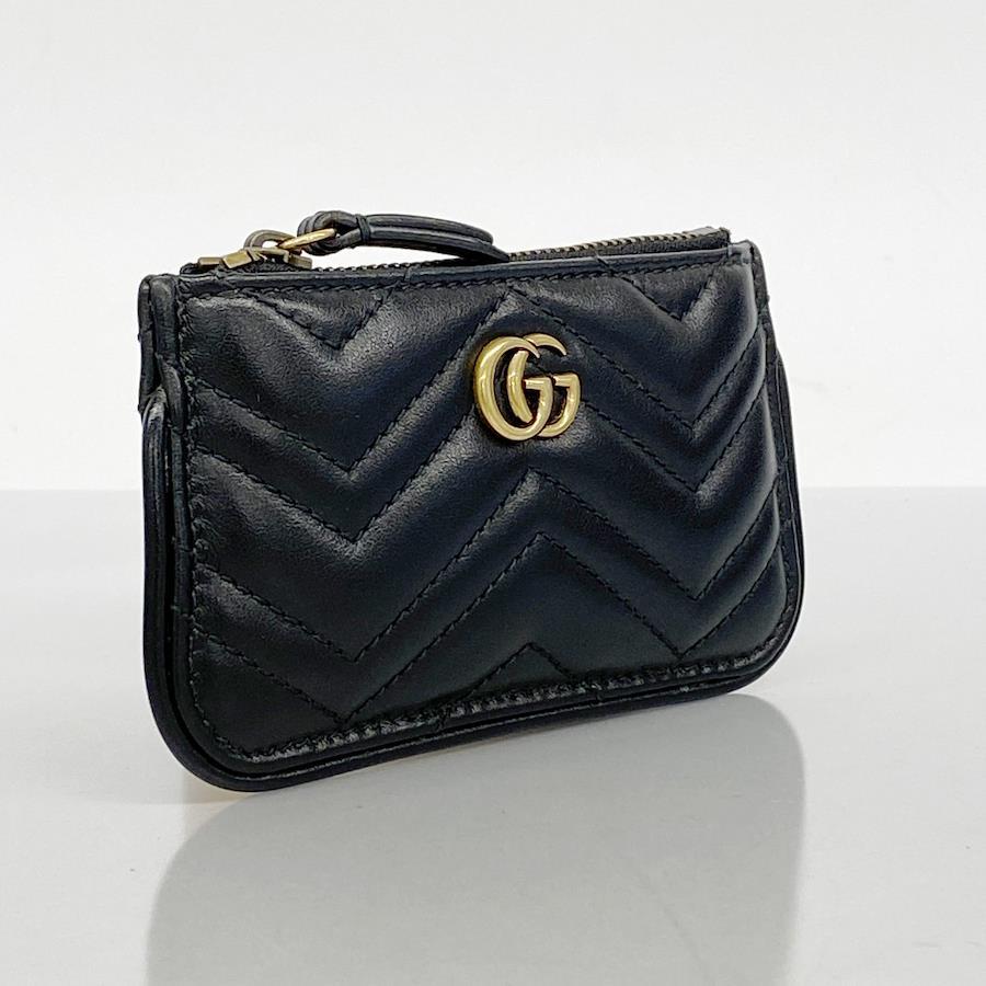 【5ia0890-h】グッチ コインケース GGマーモント 671773 レザー ブラック ゴールド金具【中古】レディース