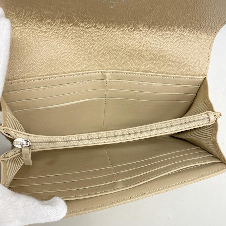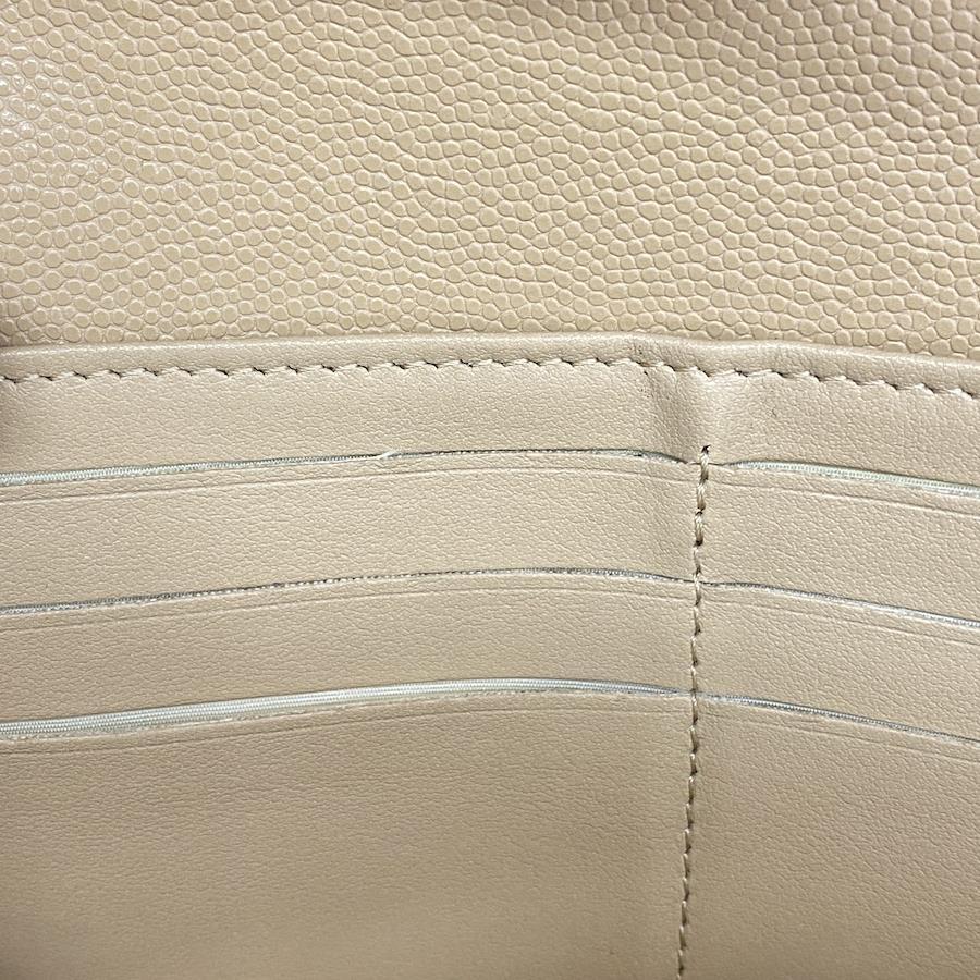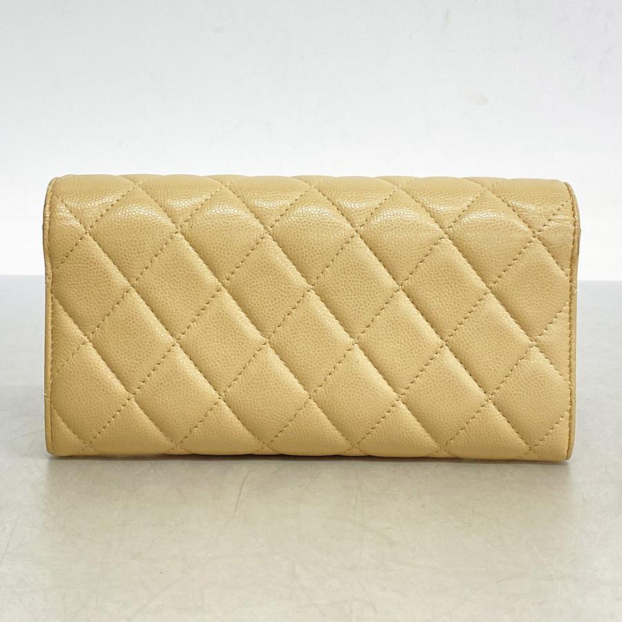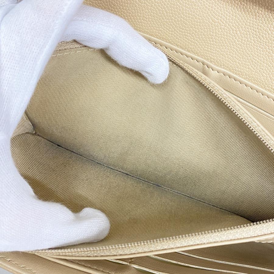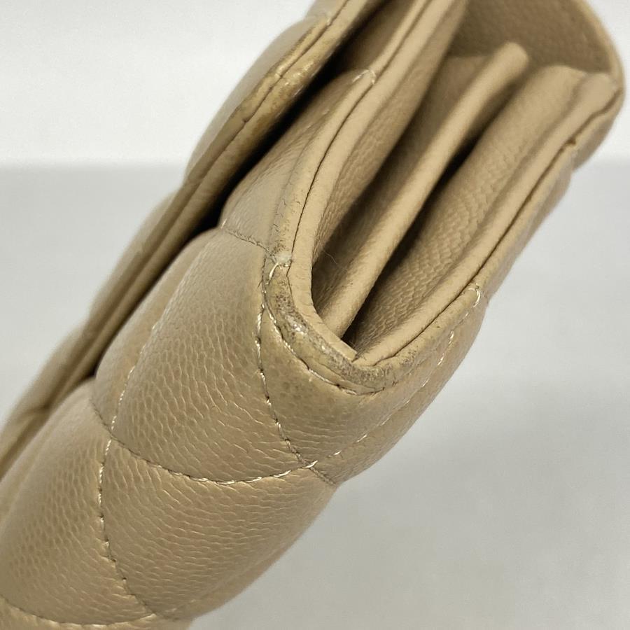 【5ia0972-h】シャネル 長財布 マトラッセ キャビアスキン ベージュ シルバー金具【中古】レディース