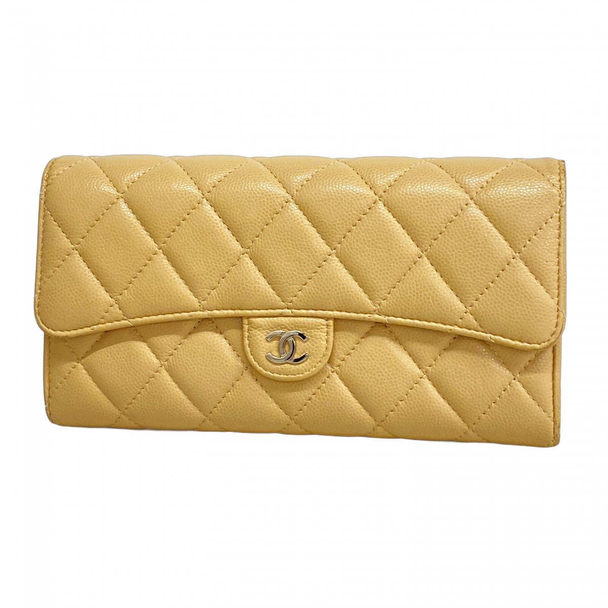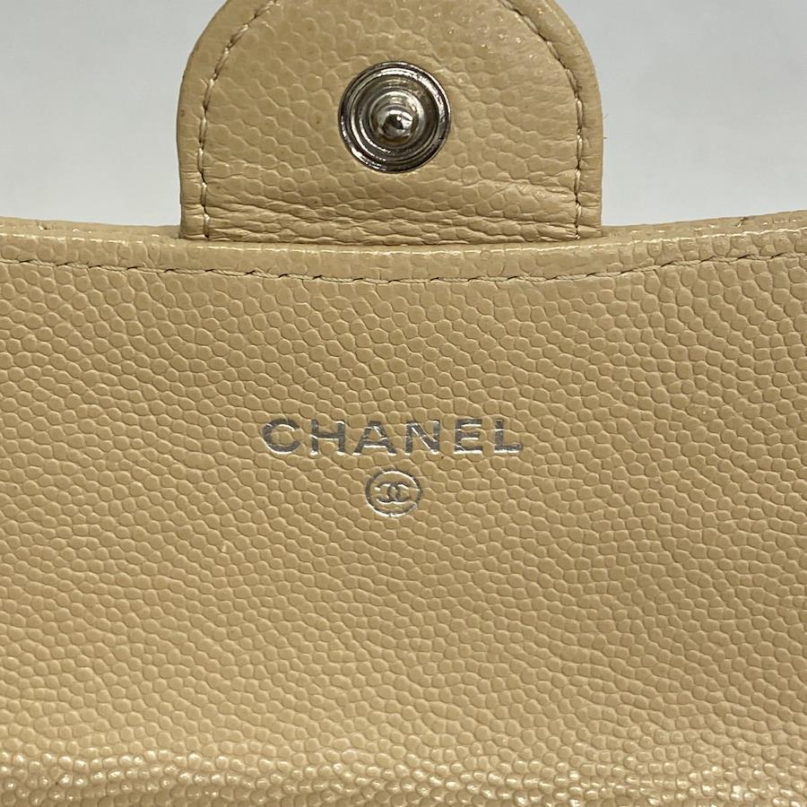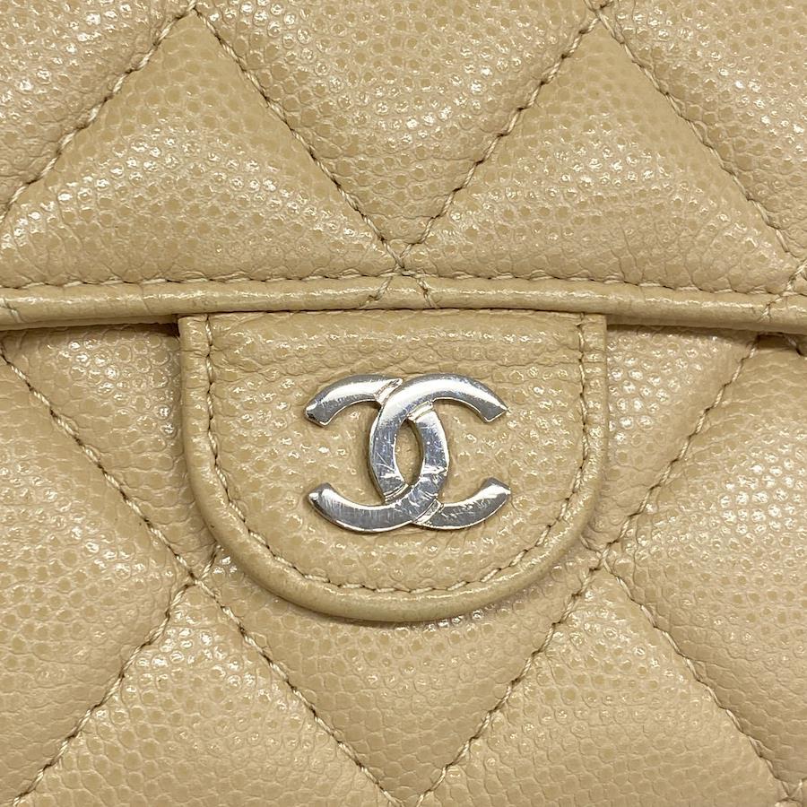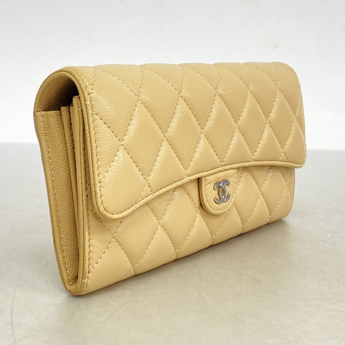 【5ia0972-h】シャネル 長財布 マトラッセ キャビアスキン ベージュ シルバー金具【中古】レディース