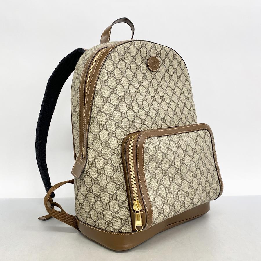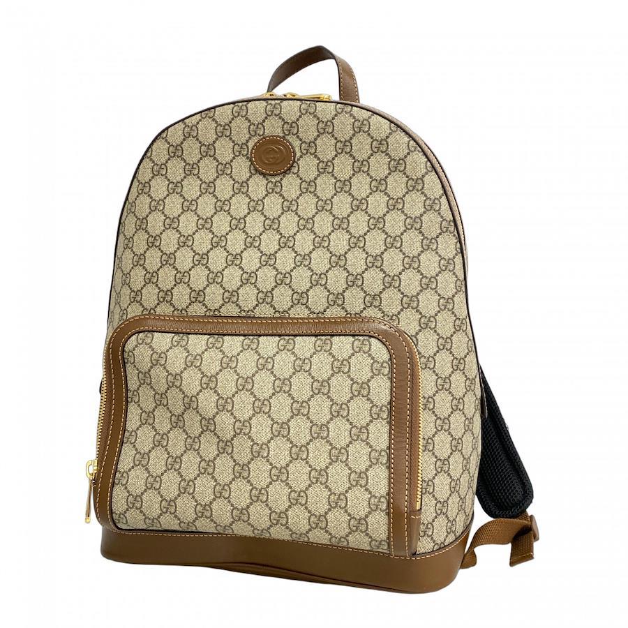 【5ia0975-h】グッチ リュック・デイパック GGスプリーム 704017 PVC ベージュ ブラウン ゴールド金具【中古】メンズ レディース ユニセックス