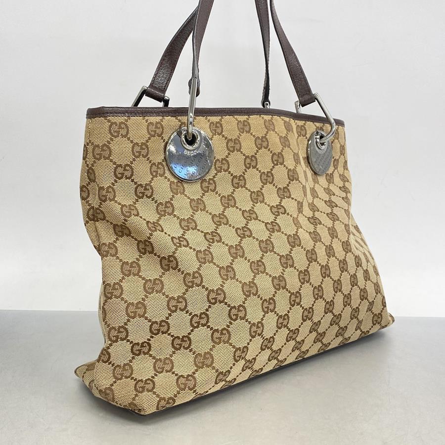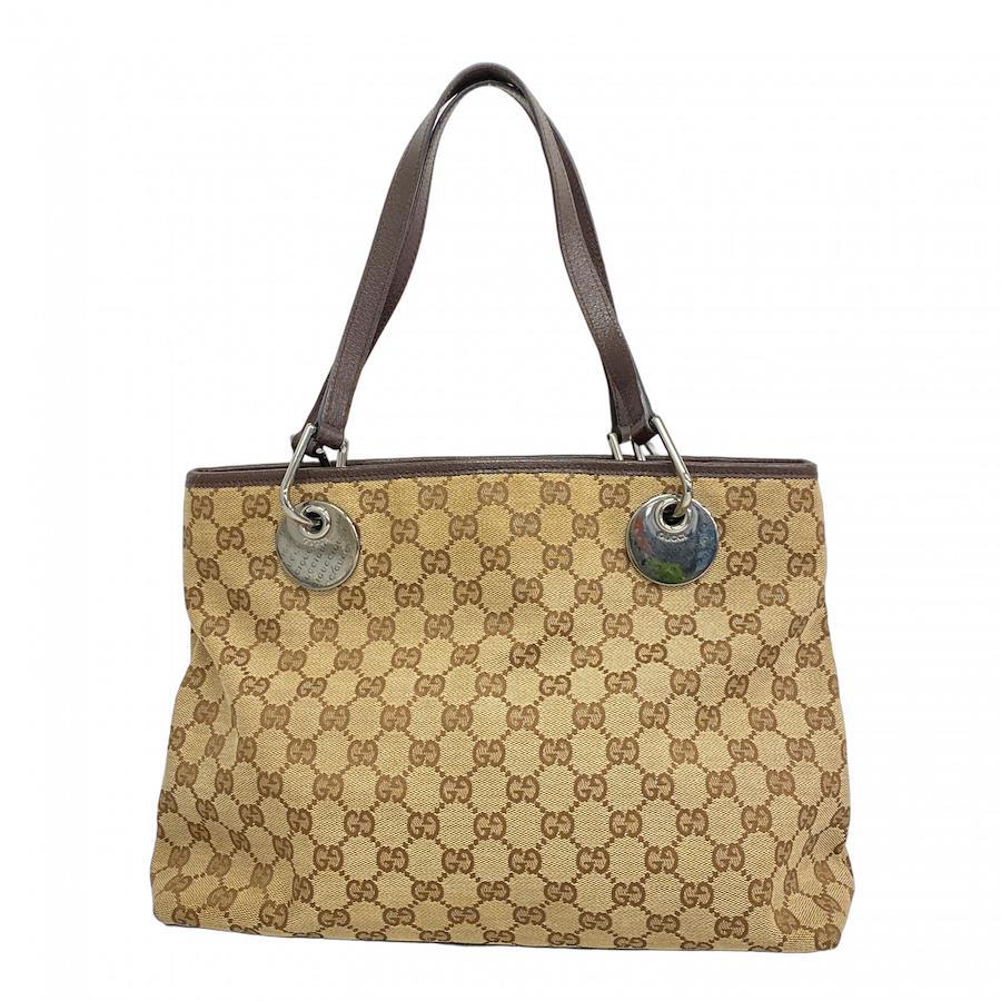 【5ia1182-h】グッチ トートバッグ GGキャンバス 120837 キャンバス ベージュ ブラウン シルバー金具【中古】レディース