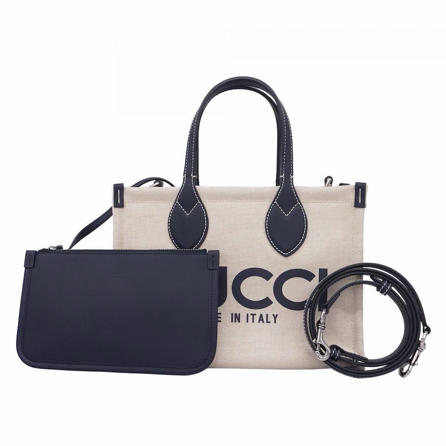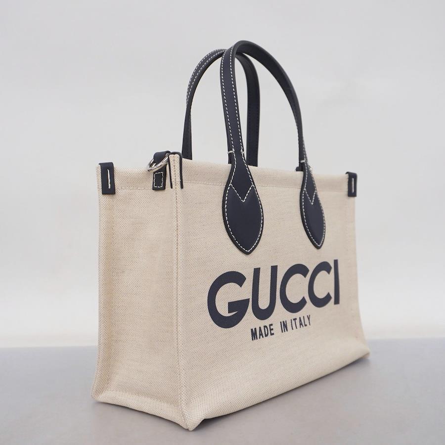 【5ib1289】グッチ トートバッグ 772144 キャンバス ベージュ ネイビー シルバー金具【中古】レディース