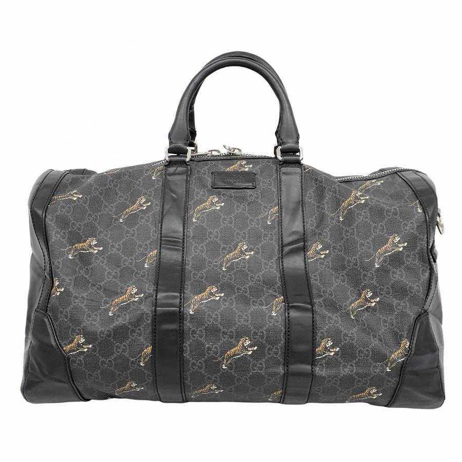 【5ib1314】グッチ ボストンバッグ GGスプリーム 474131 PVC ブラック シルバー金具【中古】メンズ