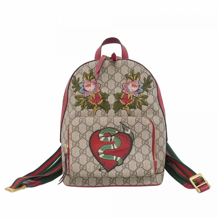 【5ib1316】グッチ リュック・デイパック GGスプリーム/シェリーライン 427042 PVC ベージュ レッド ゴールド金具【中古】レディース