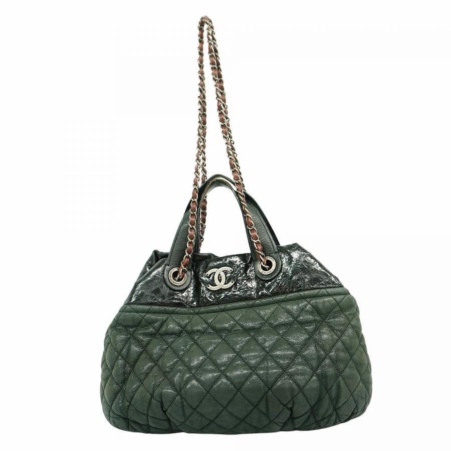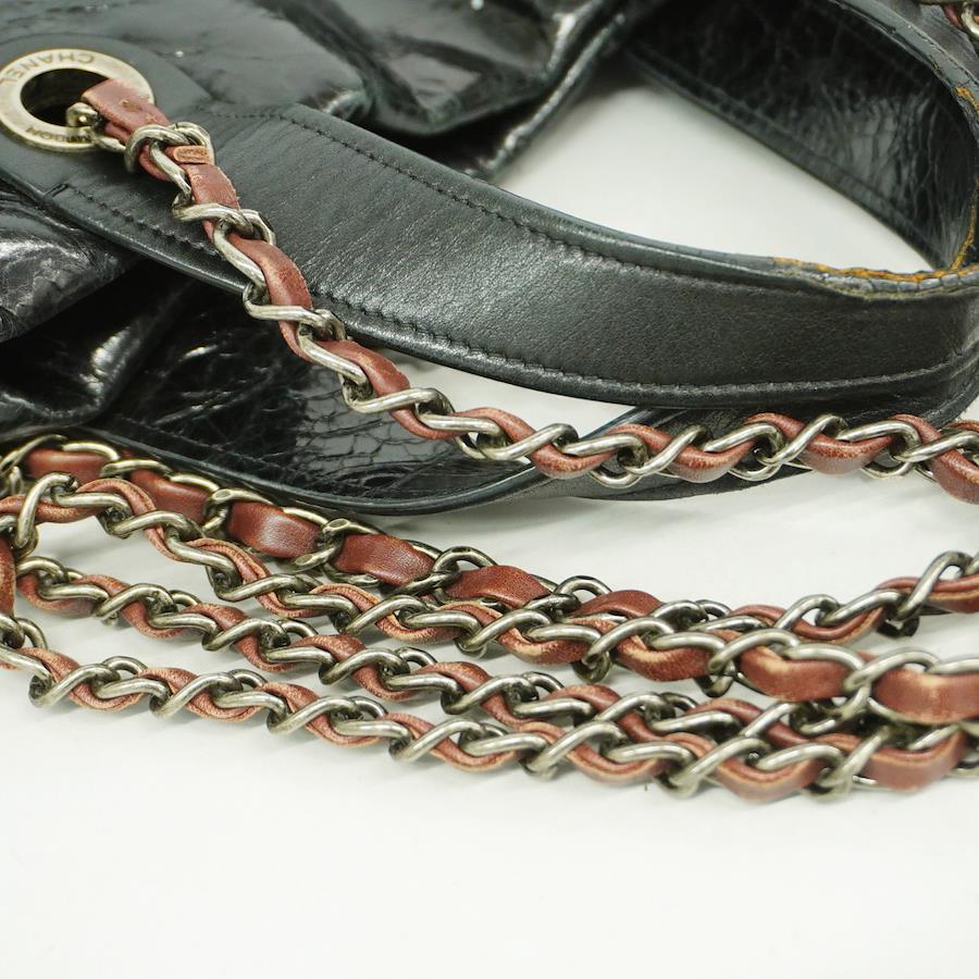 【5ib1485-h】シャネル ハンドバッグ マトラッセ インザミックス スパークルレザー ブラック シルバー金具【中古】レディース