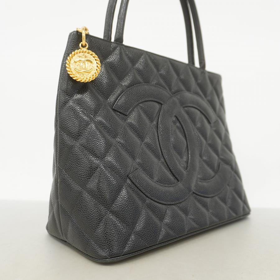 【5ib2168-h】シャネル トートバッグトート キャビアスキン ブラック ゴールド金具【中古】レディース