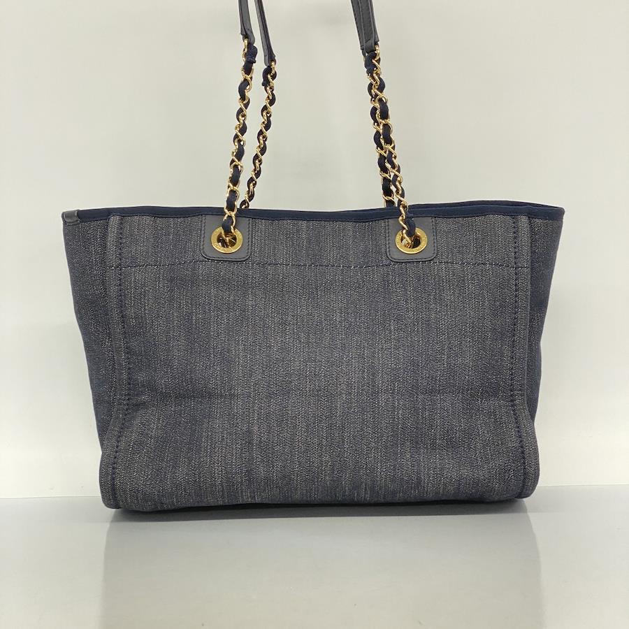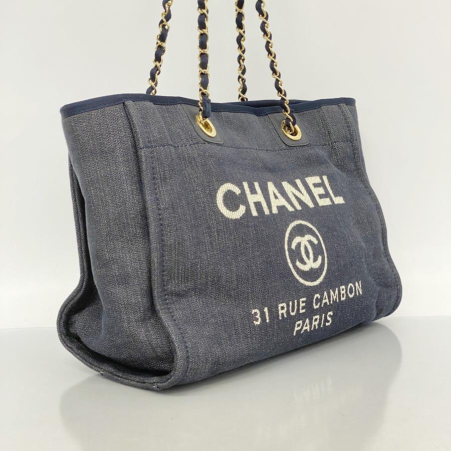 【5ib2264】シャネル トートバッグ ドーヴィル キャンバス ネイビー ゴールド金具【中古】レディース