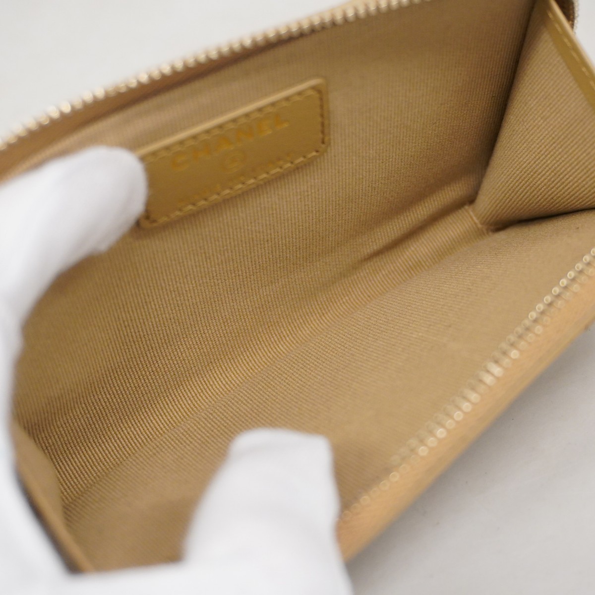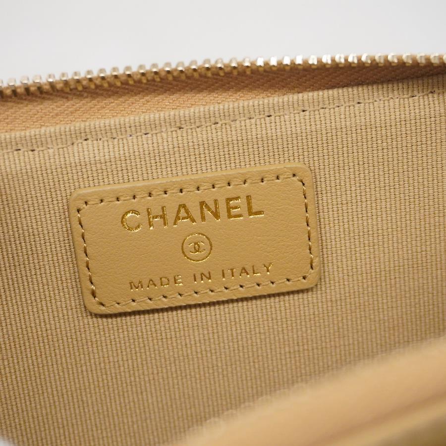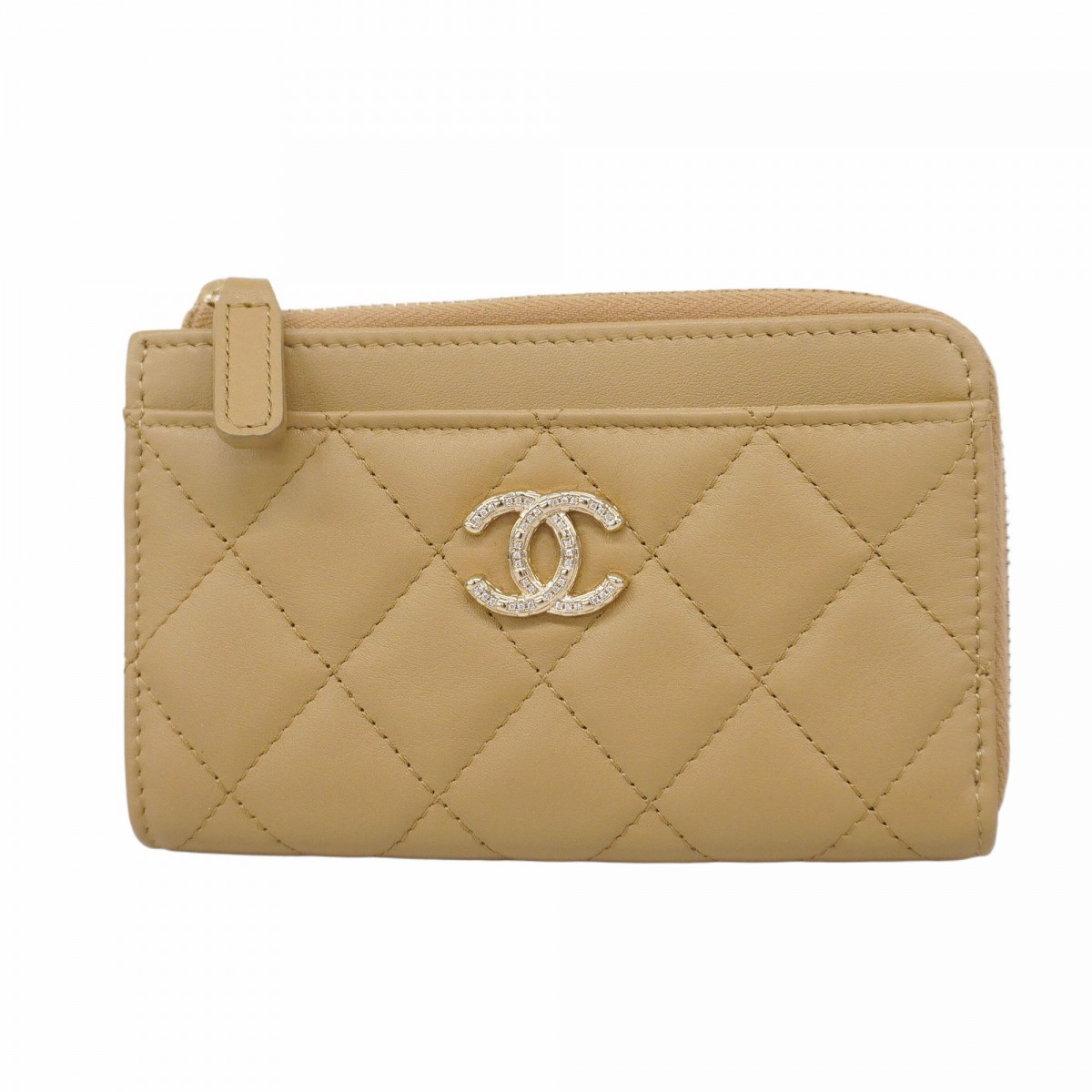 【5ib2430】シャネル コインケース マトラッセ ラムスキン ベージュ シャンパンゴールド金具【中古】レディース