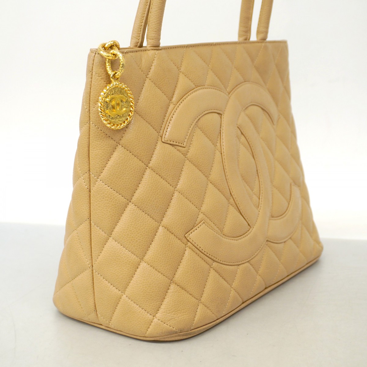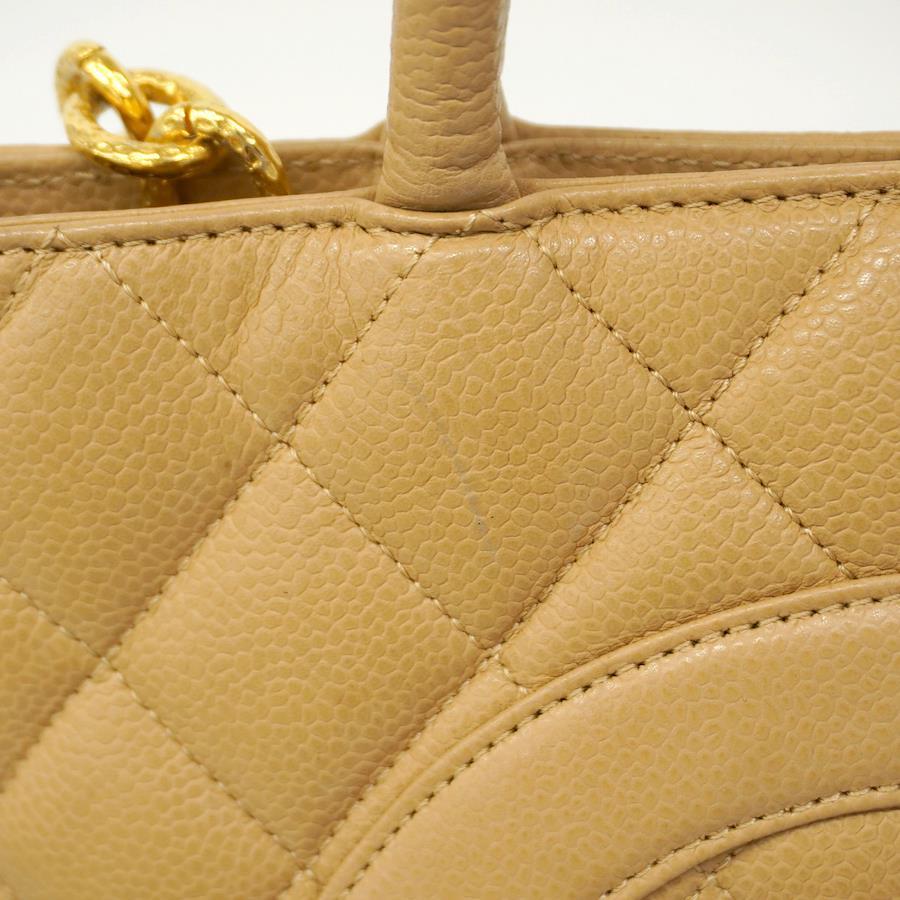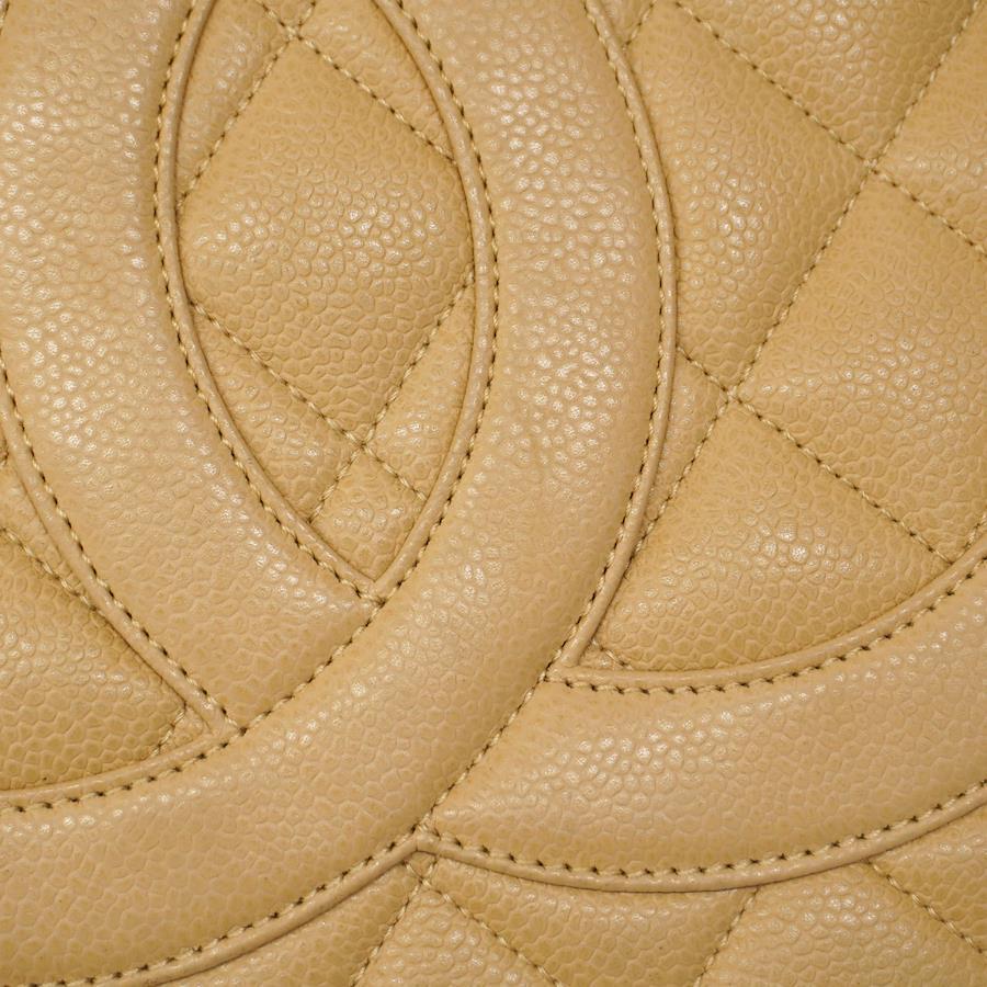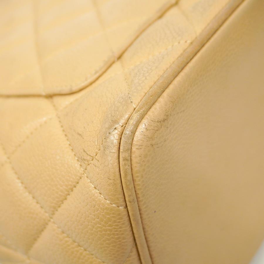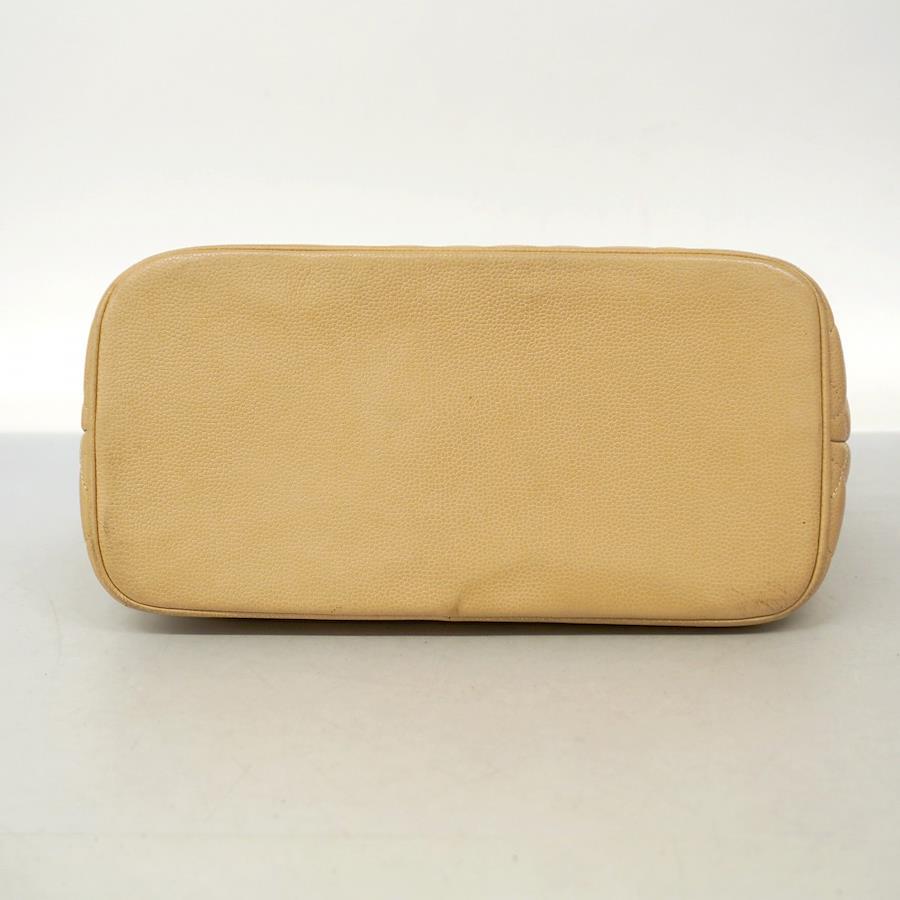 【5ib2583-h】シャネル トートバッグトート キャビアスキン ベージュ ゴールド金具【中古】レディース