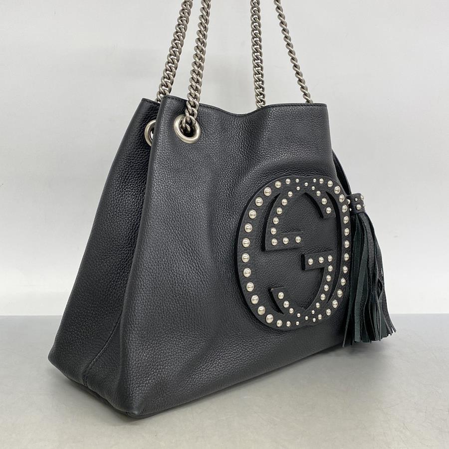 【5ic2793】グッチ ショルダーバッグ ソーホー 308982 レザー ブラック シルバー金具【中古】レディース