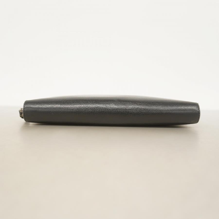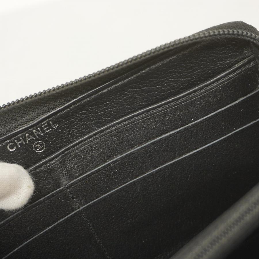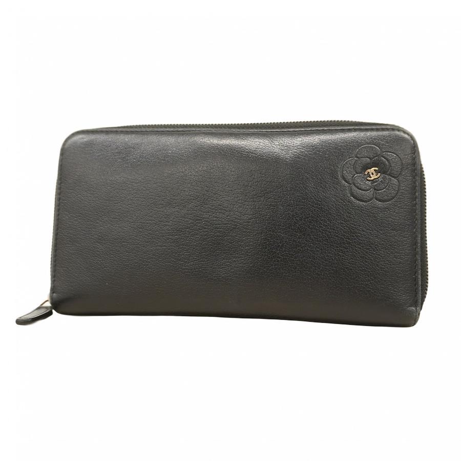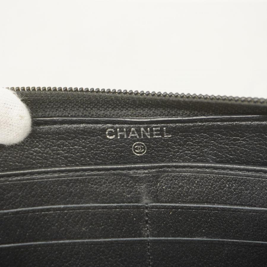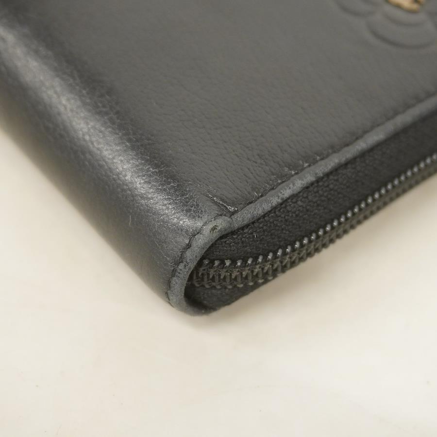 【5ic2827】シャネル 長財布 カメリア レザー ブラック シルバー金具【中古】レディース