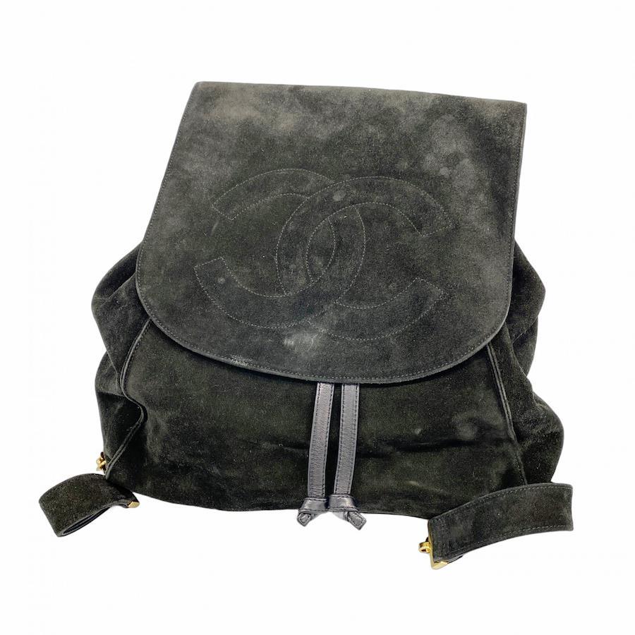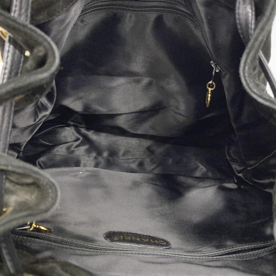 【5ic2976】シャネル リュック・デイパック スウェード ブラック ゴールド金具【中古】レディース