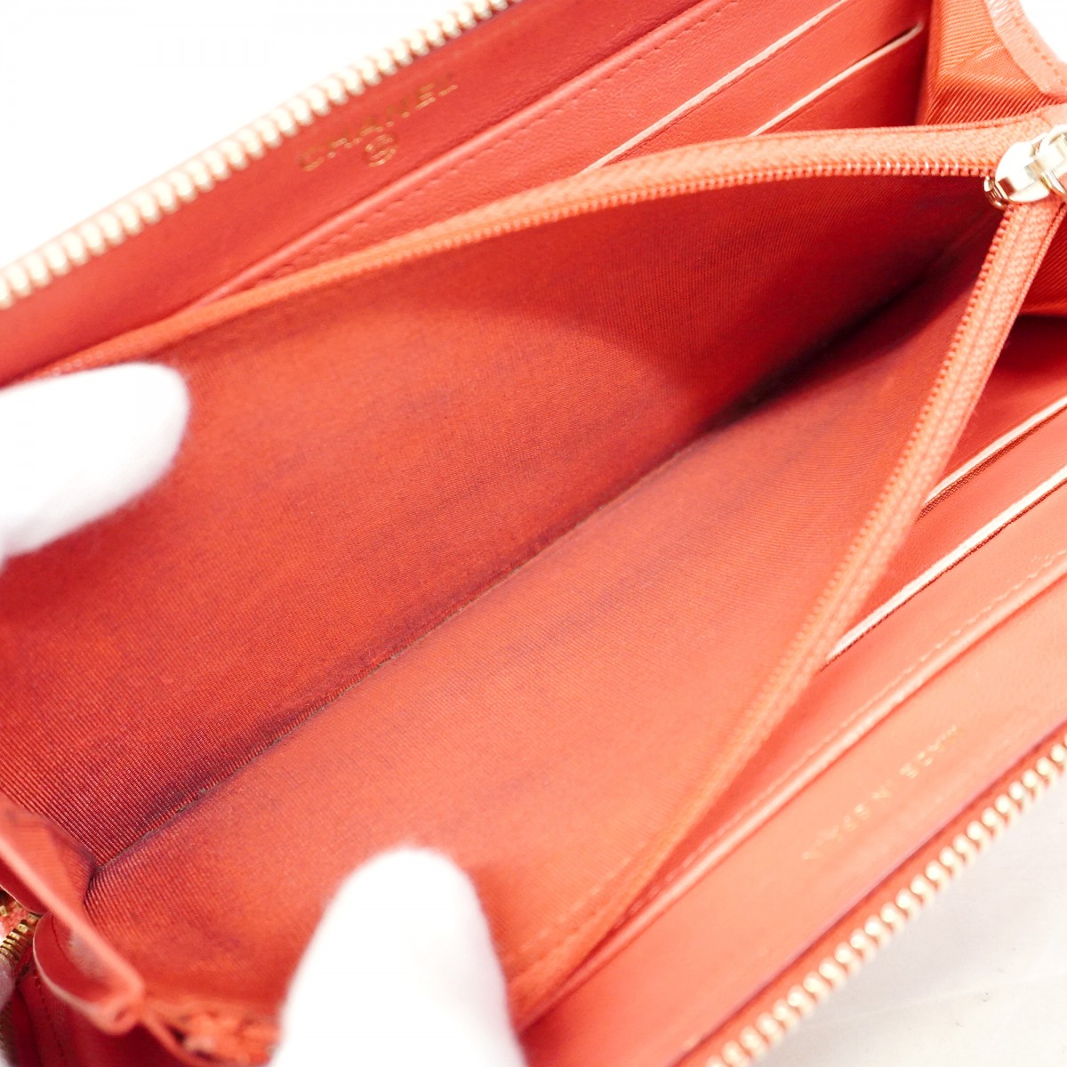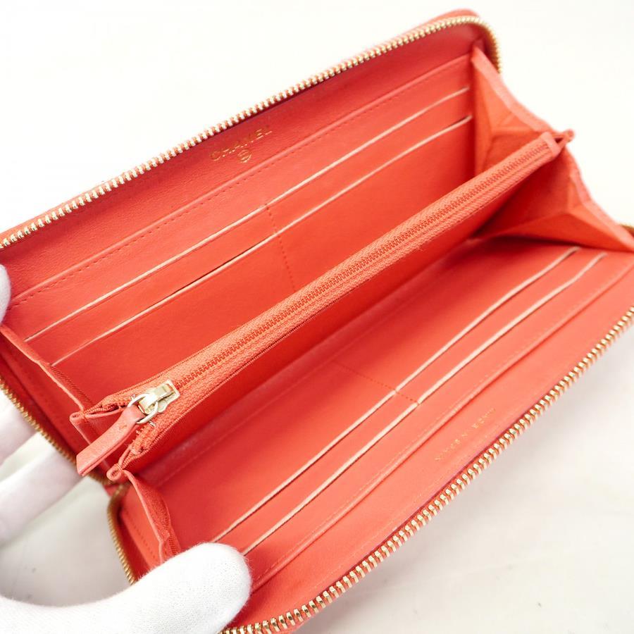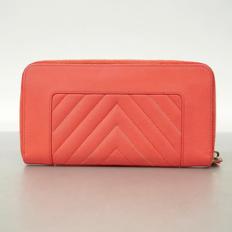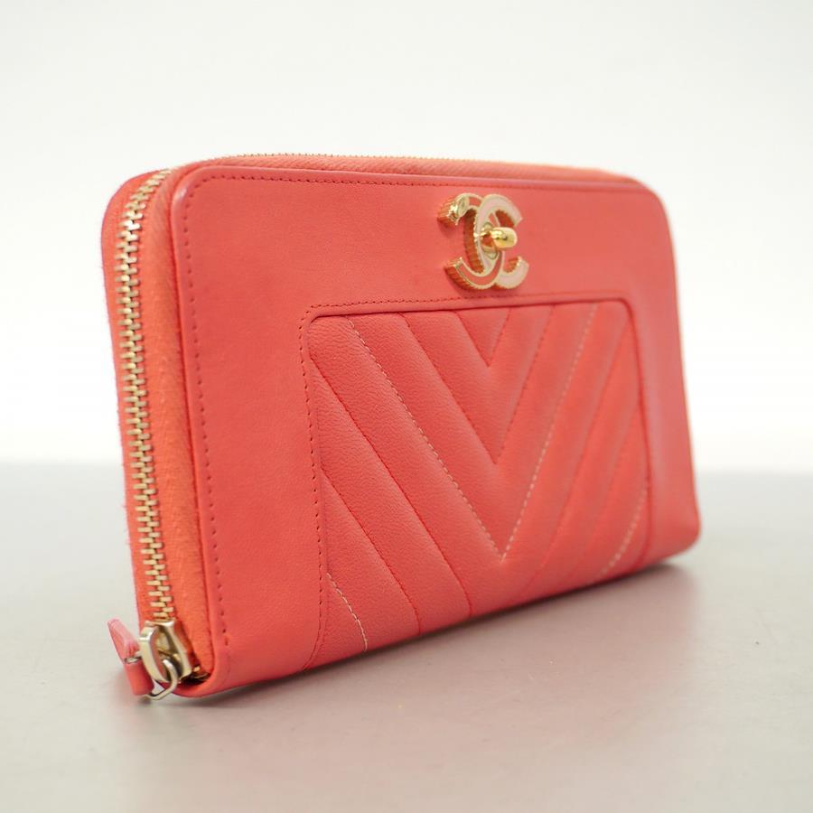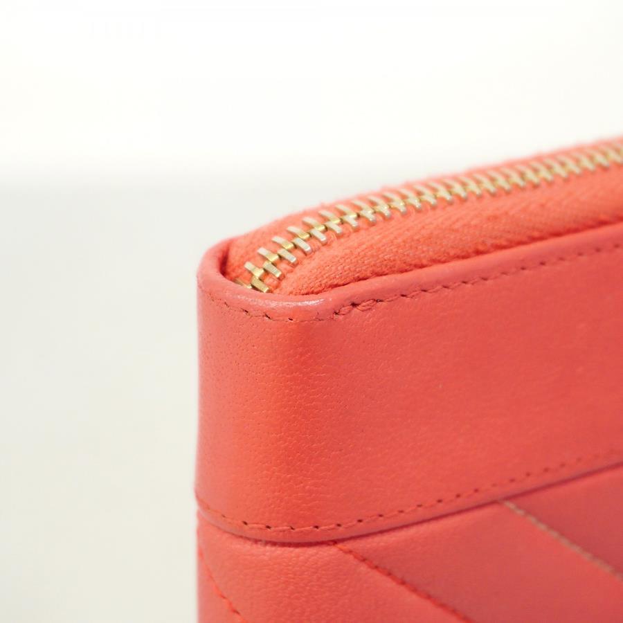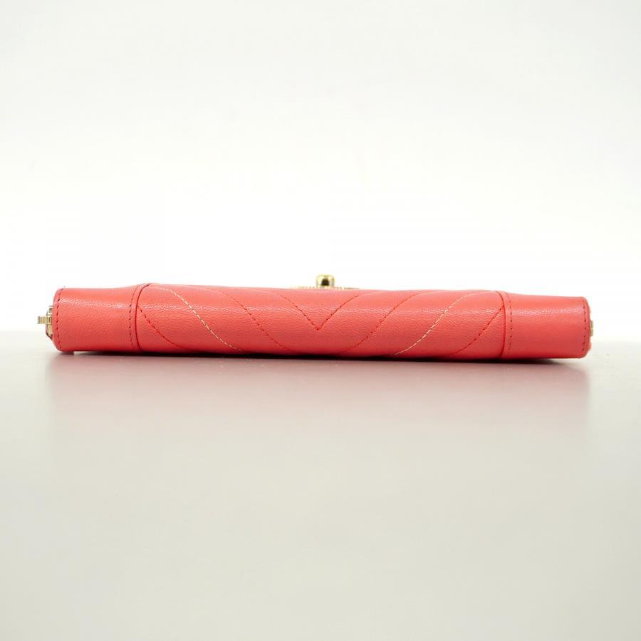 【5ic2985-h】シャネル 長財布 Vステッチ ラムスキン ピンク ゴールド金具【中古】レディース