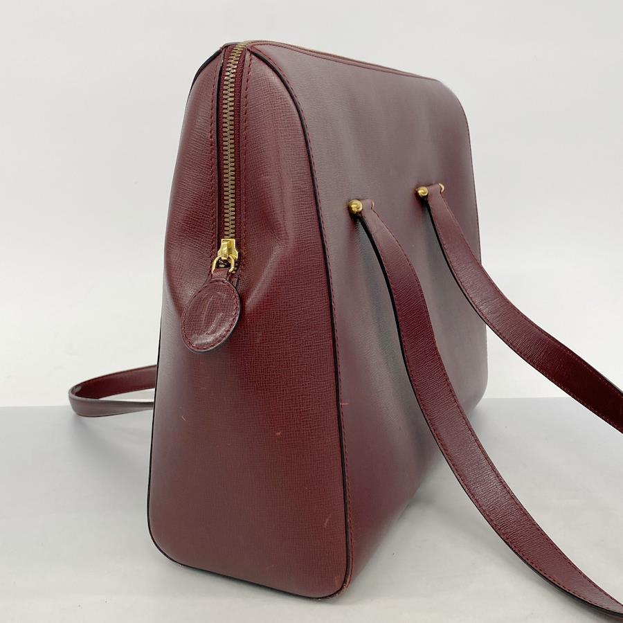【5ic3029】カルティエ ショルダーバッグ マスト レザー ボルドー ゴールド金具【中古】レディース