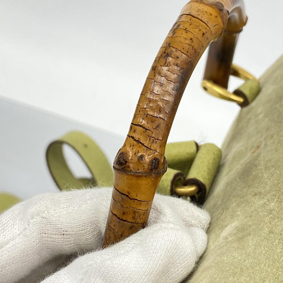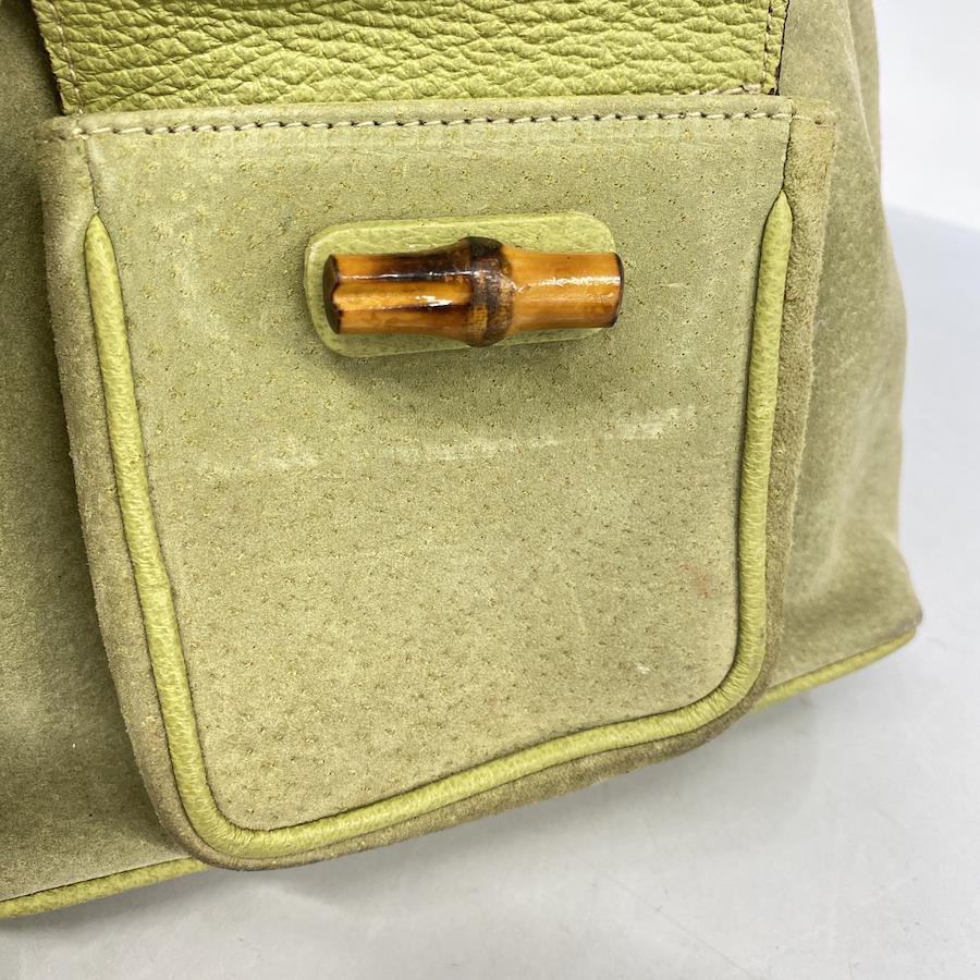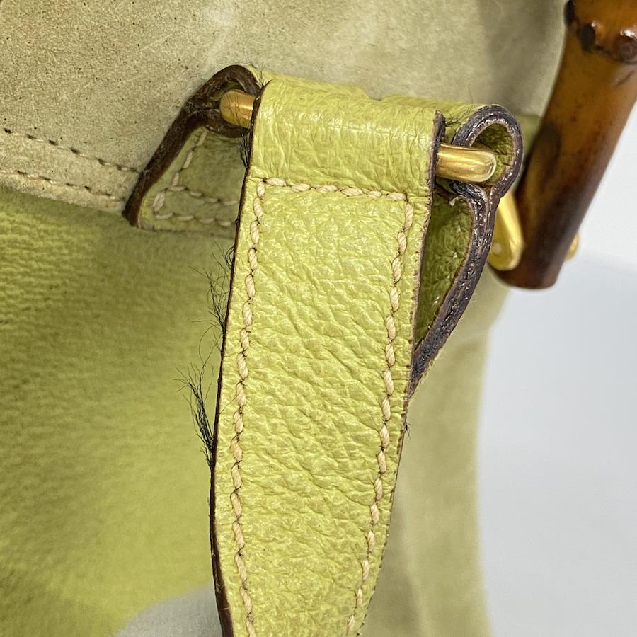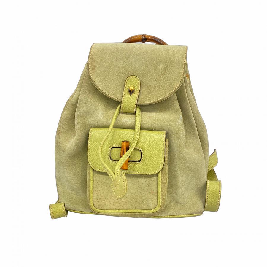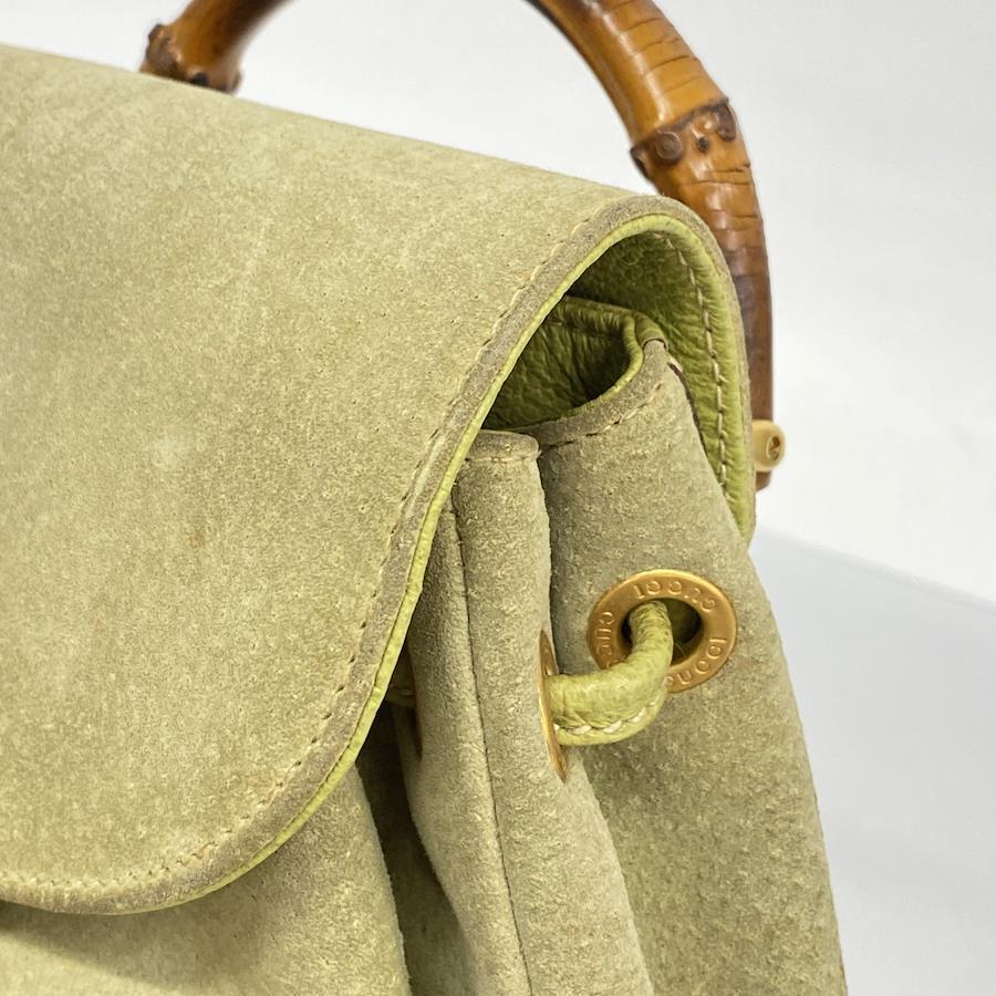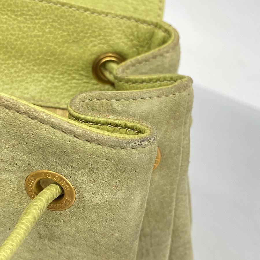 【5ic3081-h】グッチ リュック・デイパック バンブー 03 2265 0030 スウェード グリーン ゴールド金具【中古】レディース