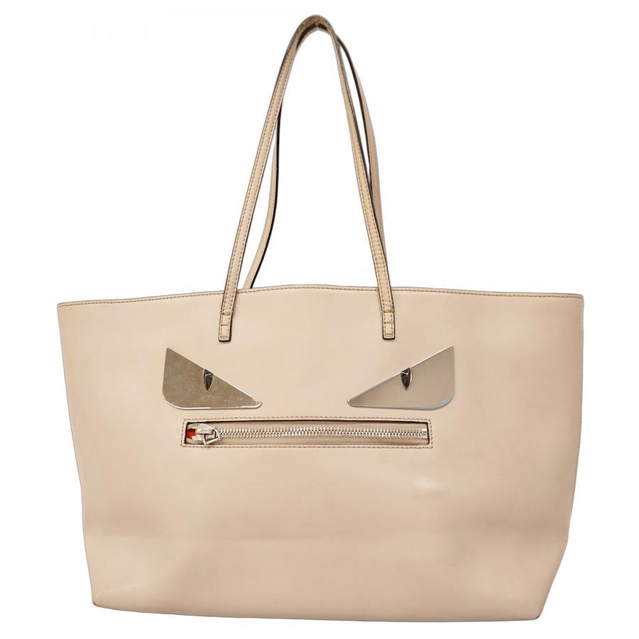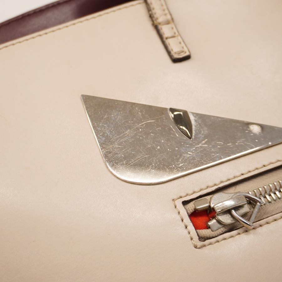 【5ic3386-h】フェンディ トートバッグ モンスター レザー ベージュ シルバー金具【中古】レディース