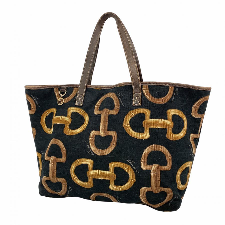 【5ic3659】グッチ トートバッグ ホースビット 154402 キャンバス ブラック ブラウン シャンパンゴールド金具【中古】レディース