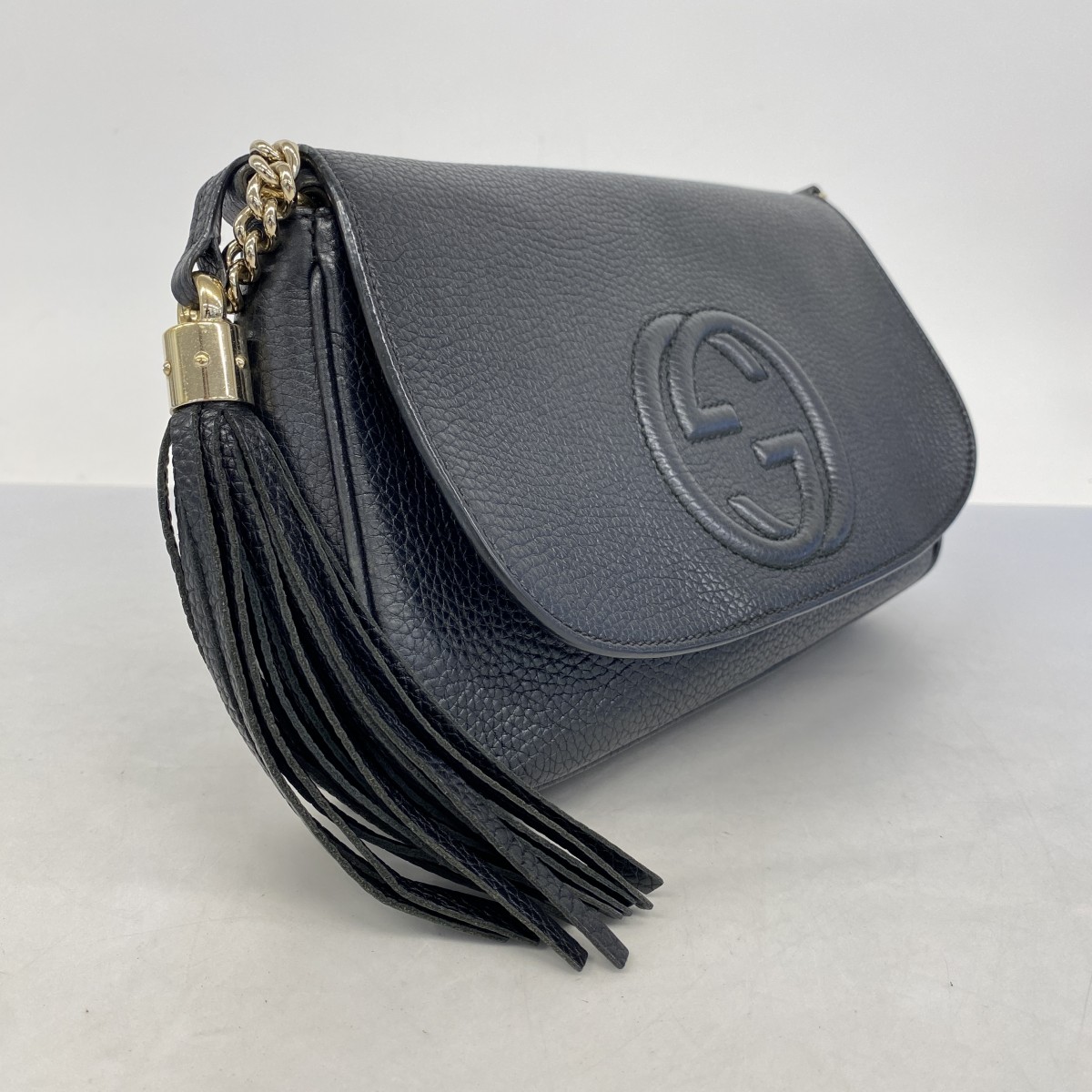 [5ic3901-h] Gucci Soho Shoulder Bag 536224 Black Leather with Champagne Gold Hardware [Pre-owned] Women's