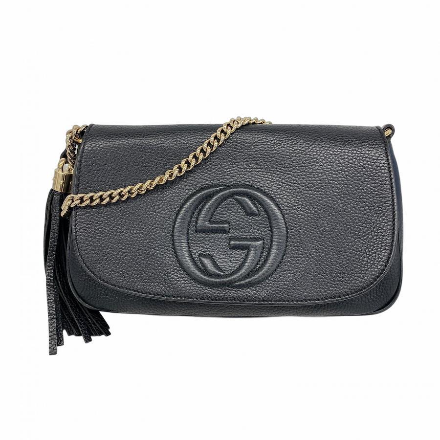 【5ic3901-h】グッチ ショルダーバッグ ソーホー 536224 レザー ブラック シャンパンゴールド金具【中古】レディース