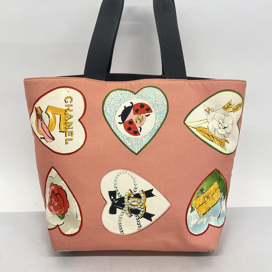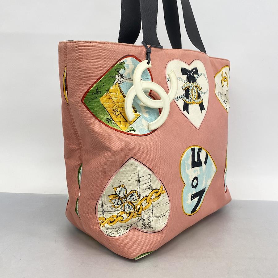【5ic3960-h】シャネル トートバッグ バレンタイン限定 キャンバス ピンク マルチカラー シルバー金具【中古】レディース
