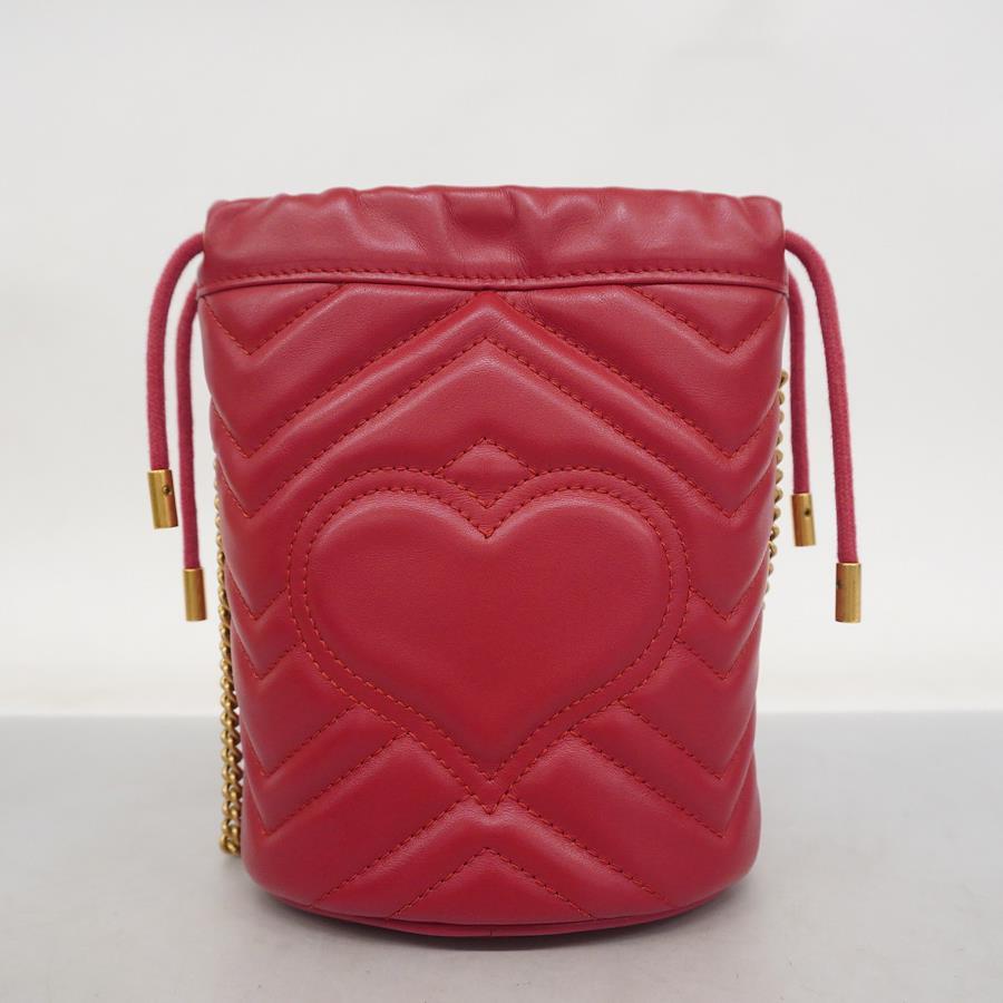 【5ic3966-h】グッチ ショルダーバッグ GGマーモント 575163 0416 レザー レッド ゴールド金具【中古】レディース