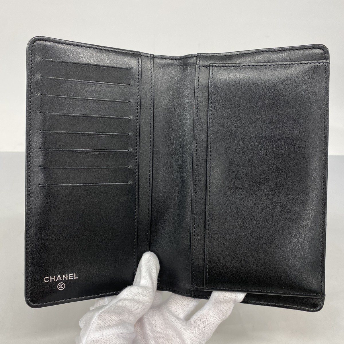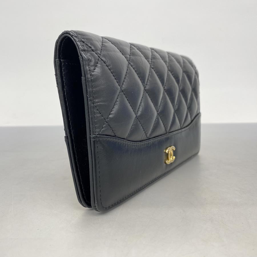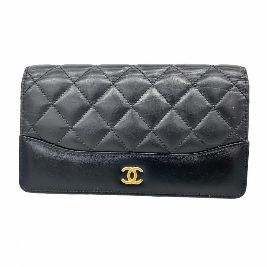 【5ic4071-h】シャネル 長財布 マトラッセ カーフスキン ブラック ゴールド金具【中古】レディース