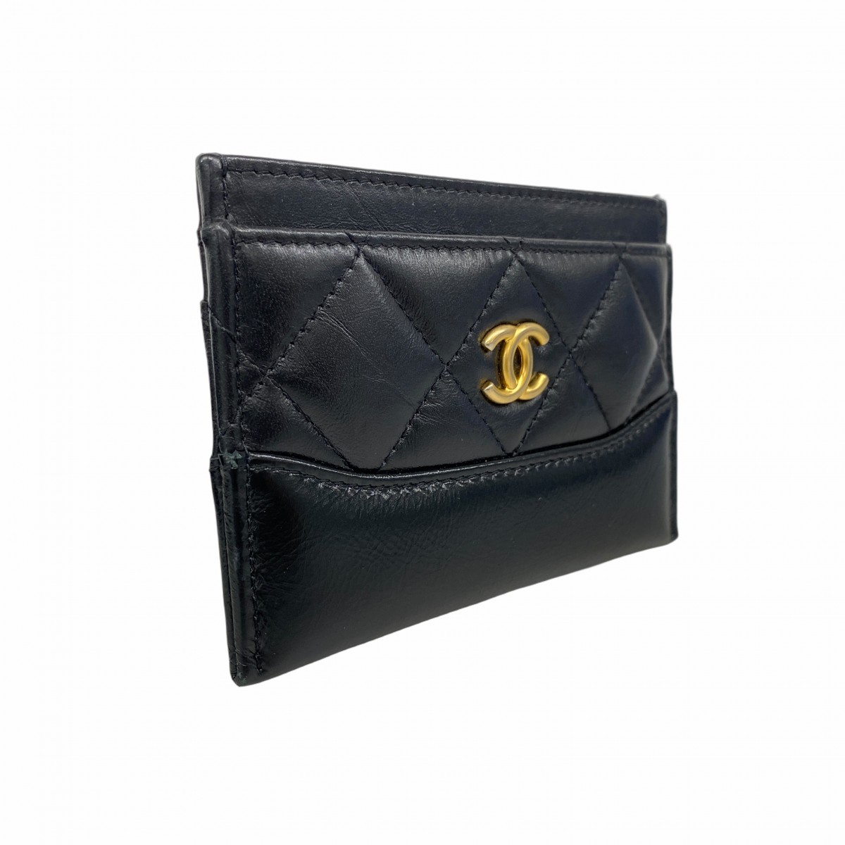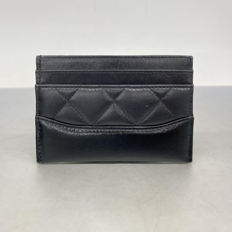 [5ic4072-h] Chanel Matelasse Card Case in Black Calfskin with Gold Hardware [Pre-owned] Women's