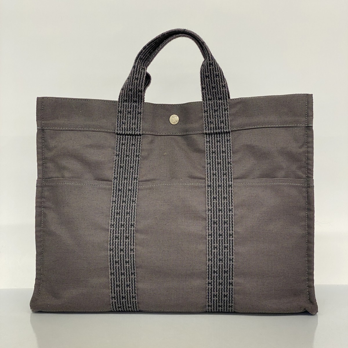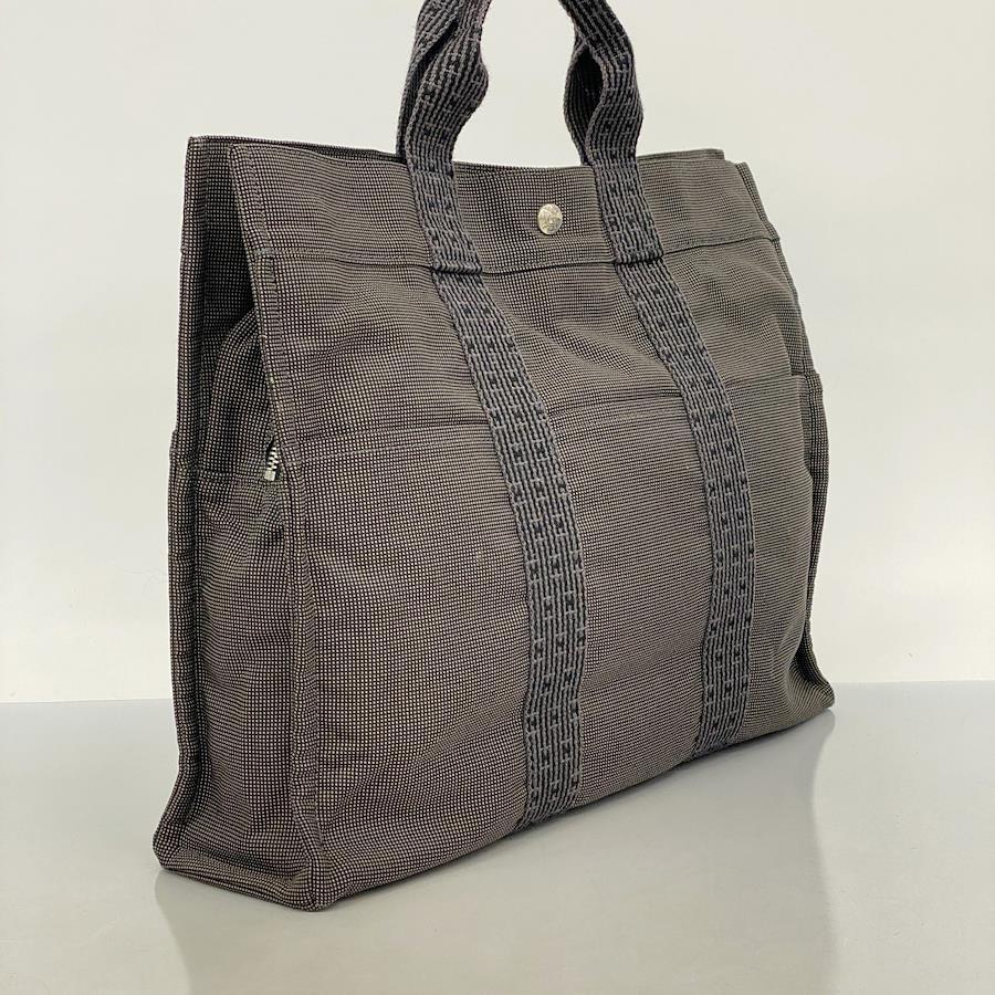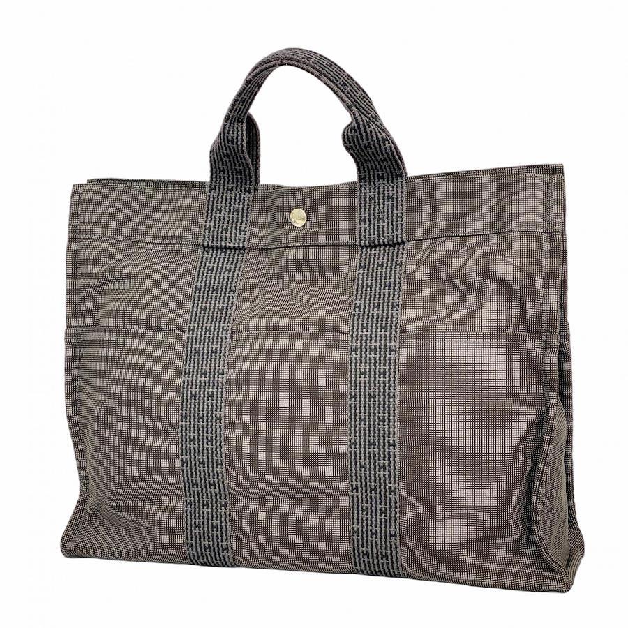 【5id4179-h】エルメス トートバッグ エールラインMM キャンバス グレー シルバー金具【中古】メンズ レディース ユニセックス
