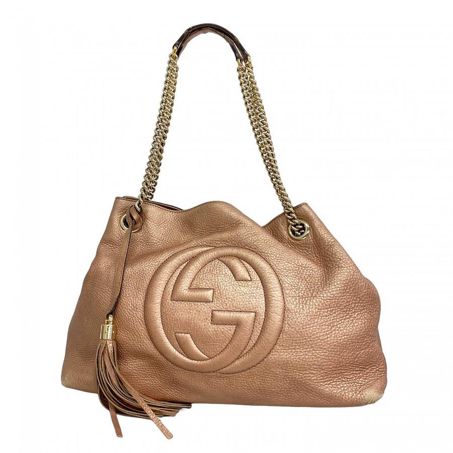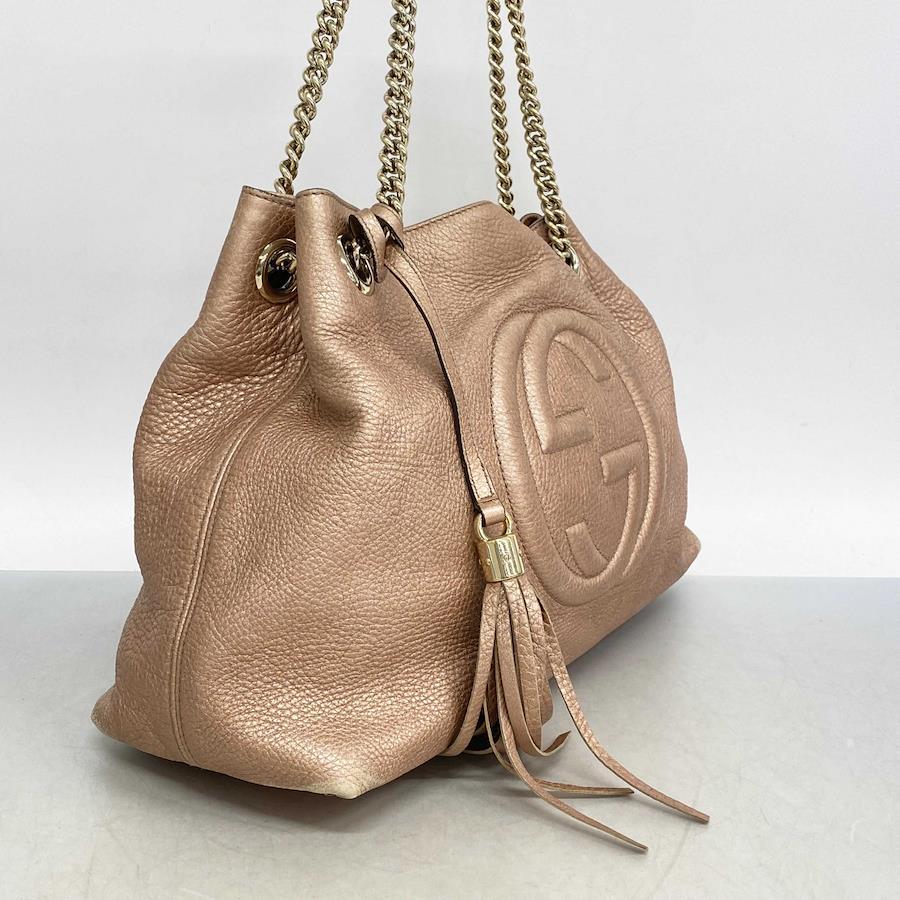【5id4225-h】グッチ ショルダーバッグ ソーホー 308982 レザー メタリックピンク シャンパンゴールド金具【中古】レディース