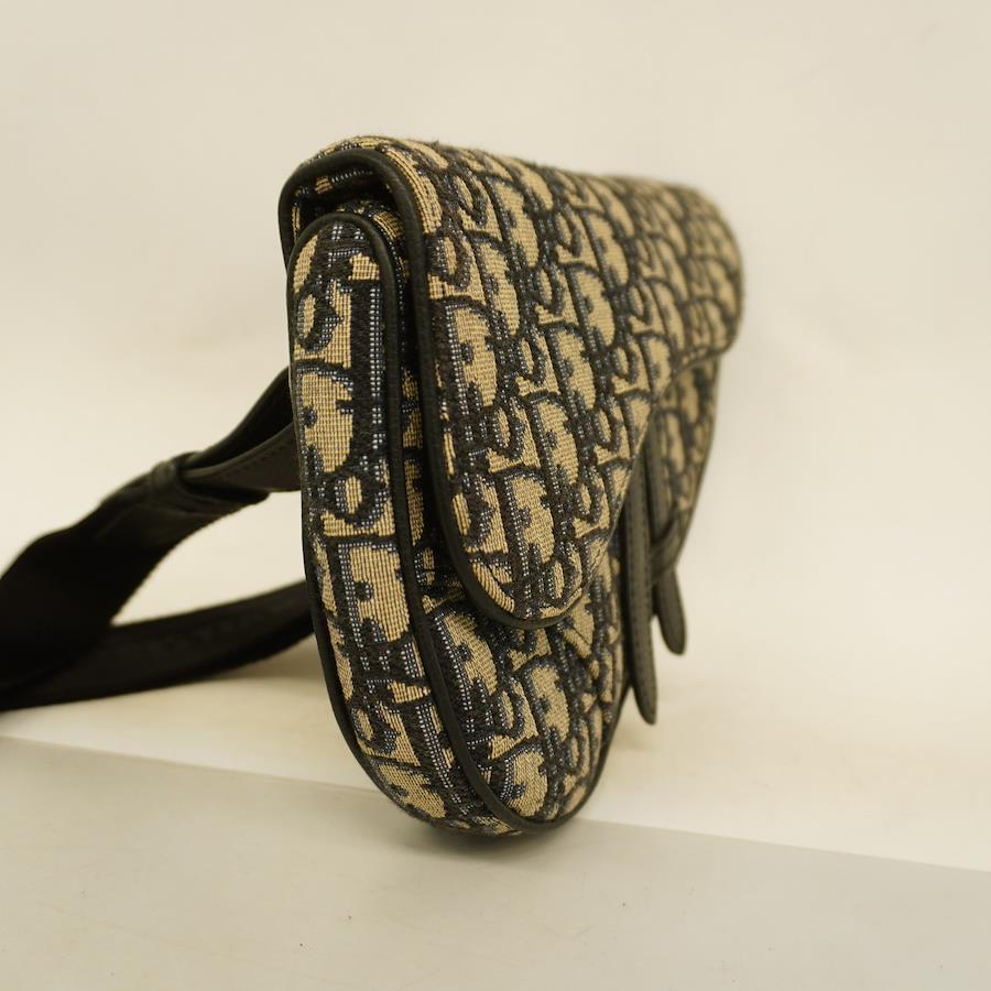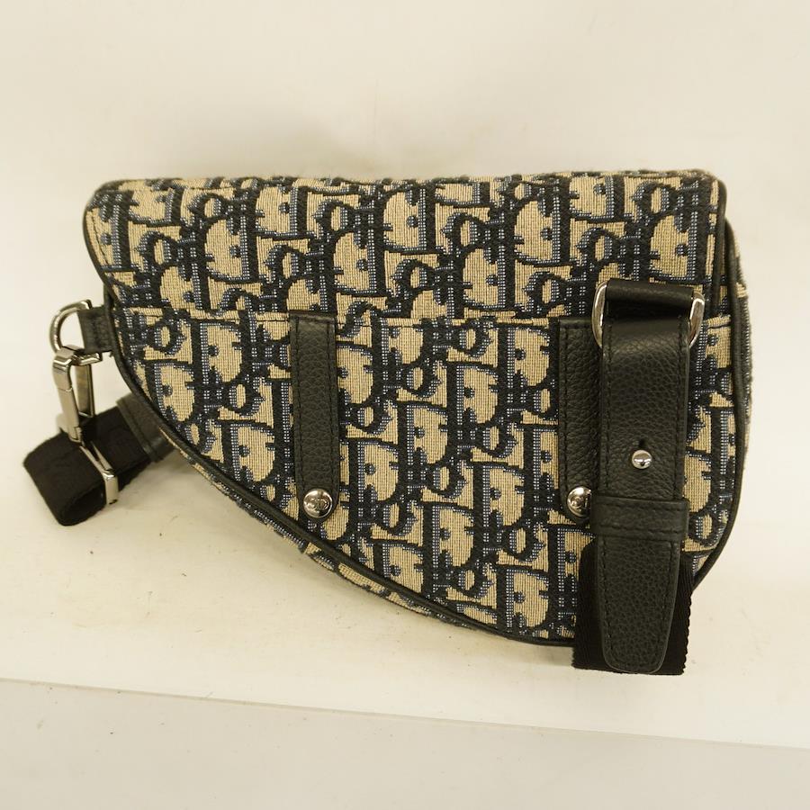 【5id4458】クリスチャンディオール ショルダーバッグ サドル キャンバス ブラック シルバー金具【中古】メンズ